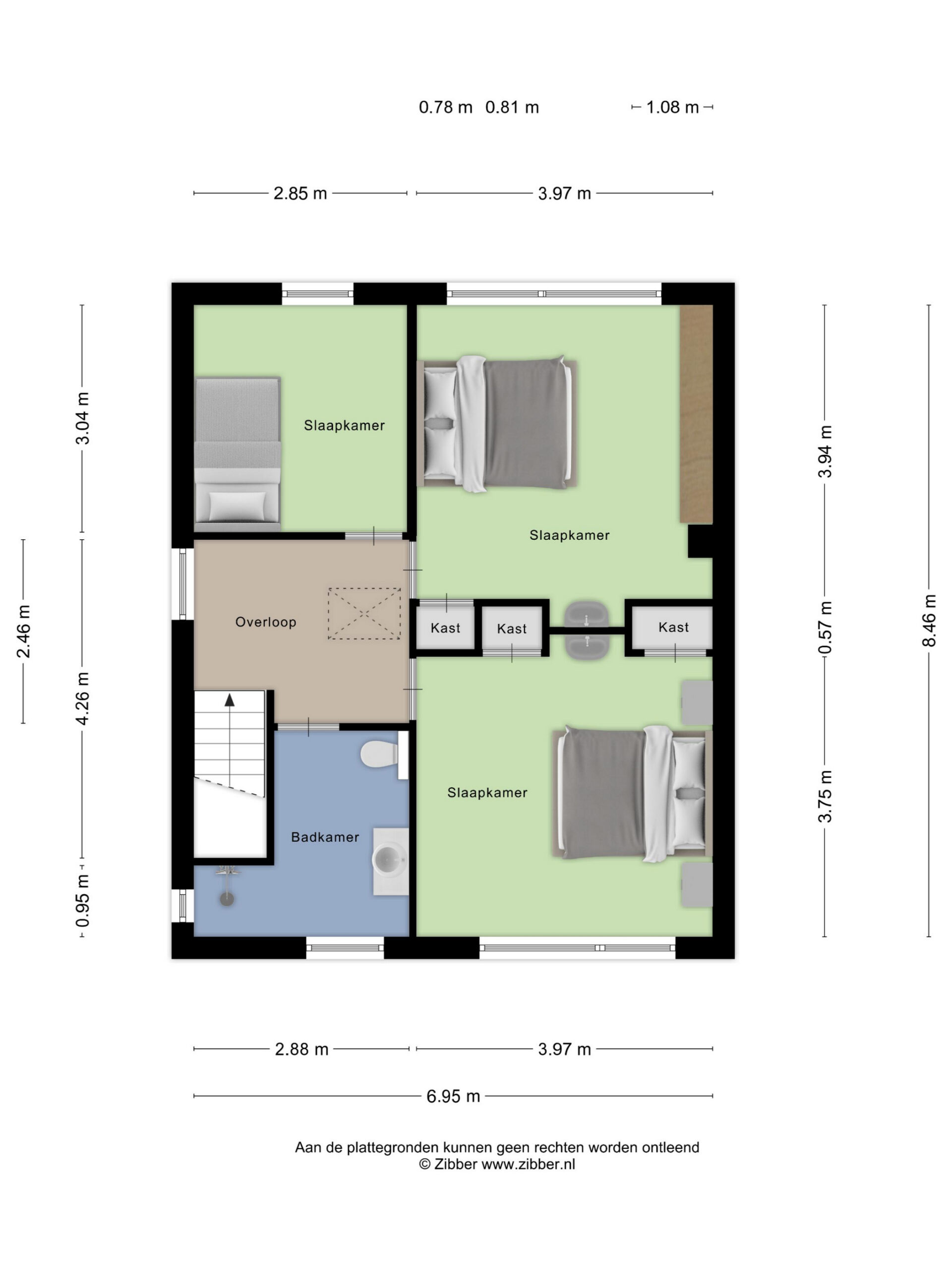 De tweede verdieping is momenteel te bereiken via een vlizotrap, maar door het plaatsen van een vaste trap kan daar aanzienlijk meer woonoppervlak worden gerealiseerd.