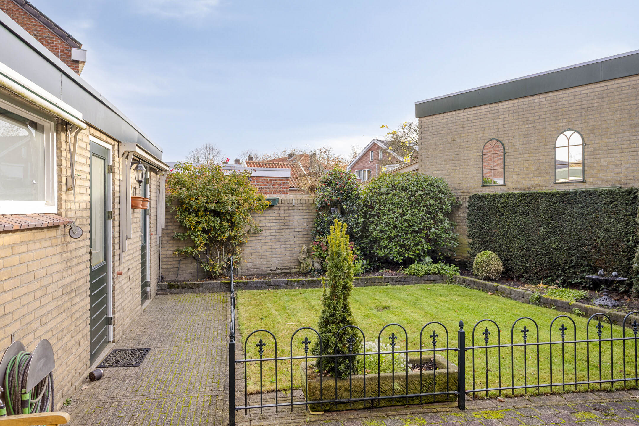 De tuin biedt volop privacy en is voorzien van een terras en een gazon.