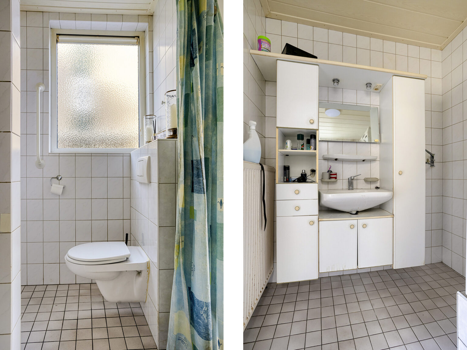 Ruime overloop die toegang biedt tot drie slaapkamers en de badkamer. De hoofdslaapkamer bevindt zich aan de voorzijde en biedt ruimte voor een tweepersoonsbed en een kast. Aan de achterzijde bevinden zich nog twee goed bemeten slaapkamers. Opvallend zijn de inbouwkasten in de slaapkamers, wat erg praktisch is. Aan de voorzijde bevindt zich tevens een tweede badkamer, voorzien van een douche, wastafel en toilet.