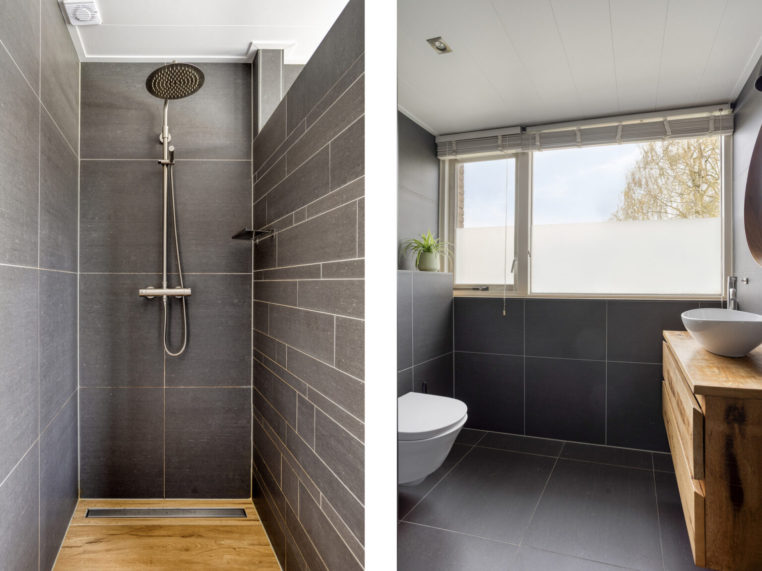Overloop, 3 ruime slaapkamers en een moderne badkamer met inloopdouche, toilet, badkamermeubel en designradiator.