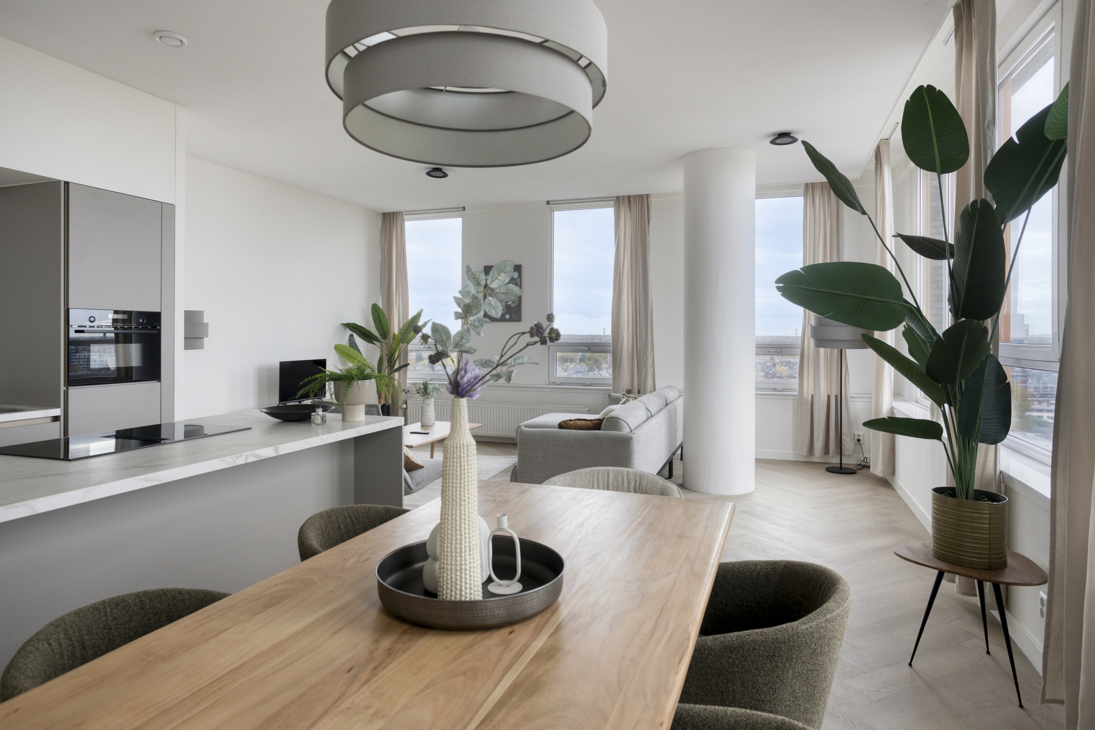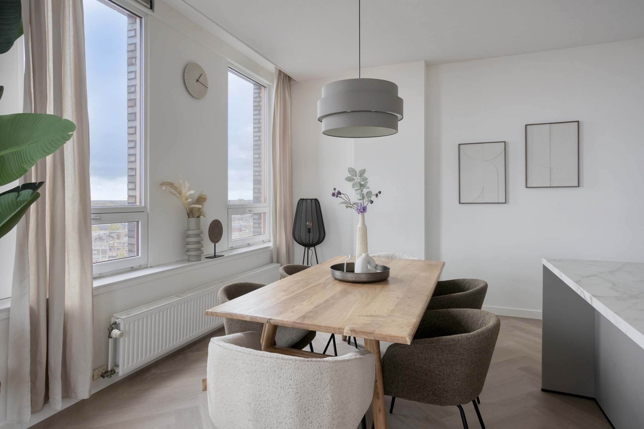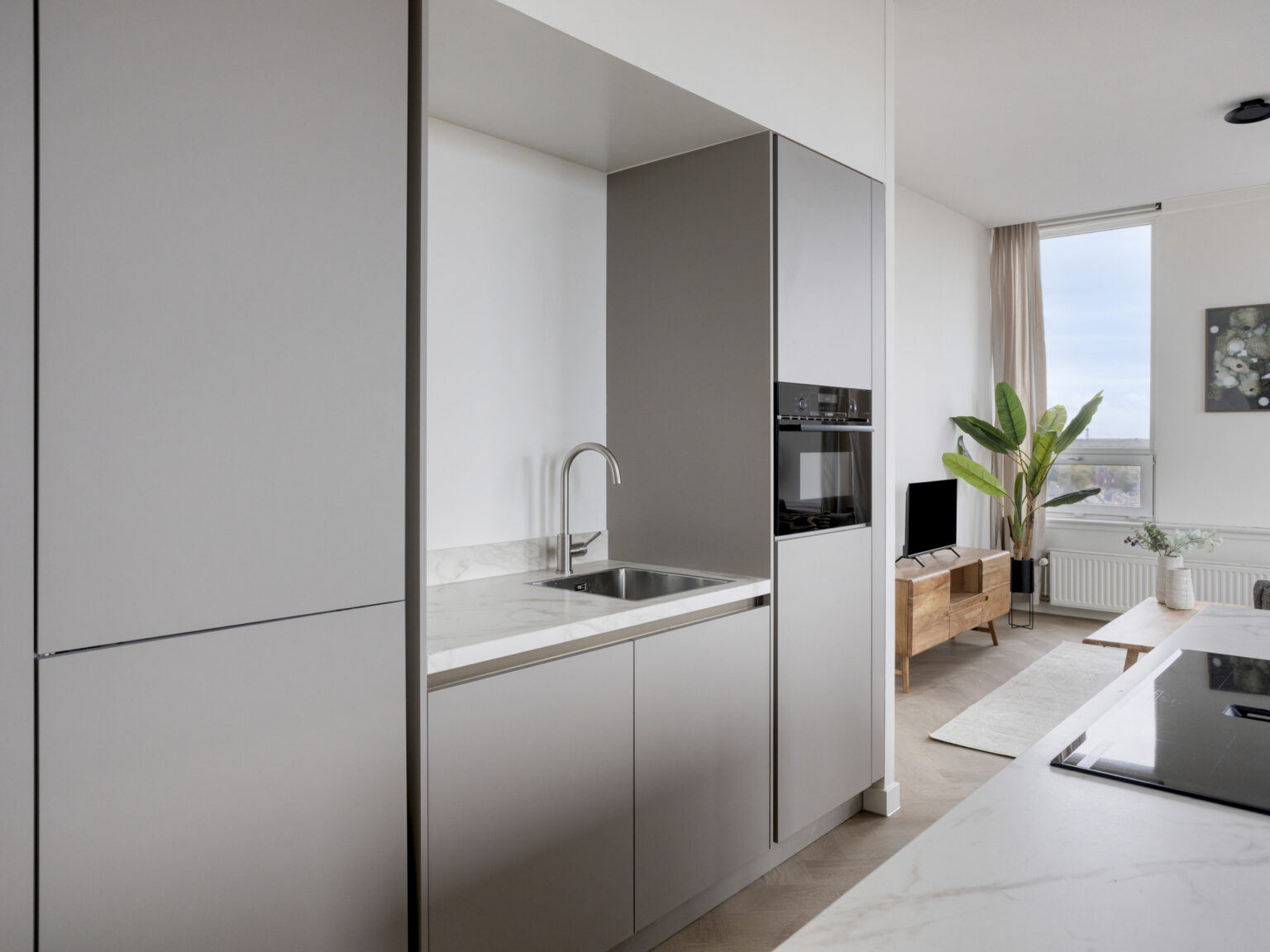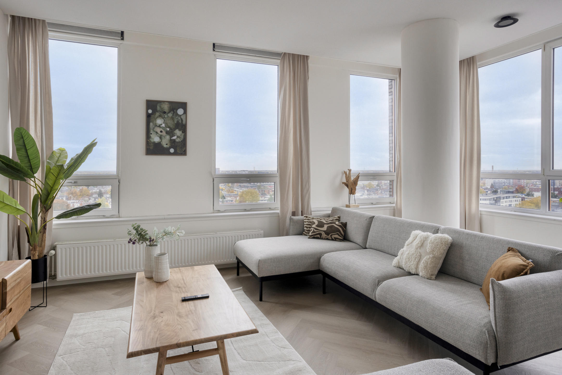 Boven de binnenstad van Enschede, op de 10e verdieping bevindt zich dit VOLLEDIG VERNIEUWDE EN ZEER LUXE AFGEWERKTE appartement met de volgende indeling: