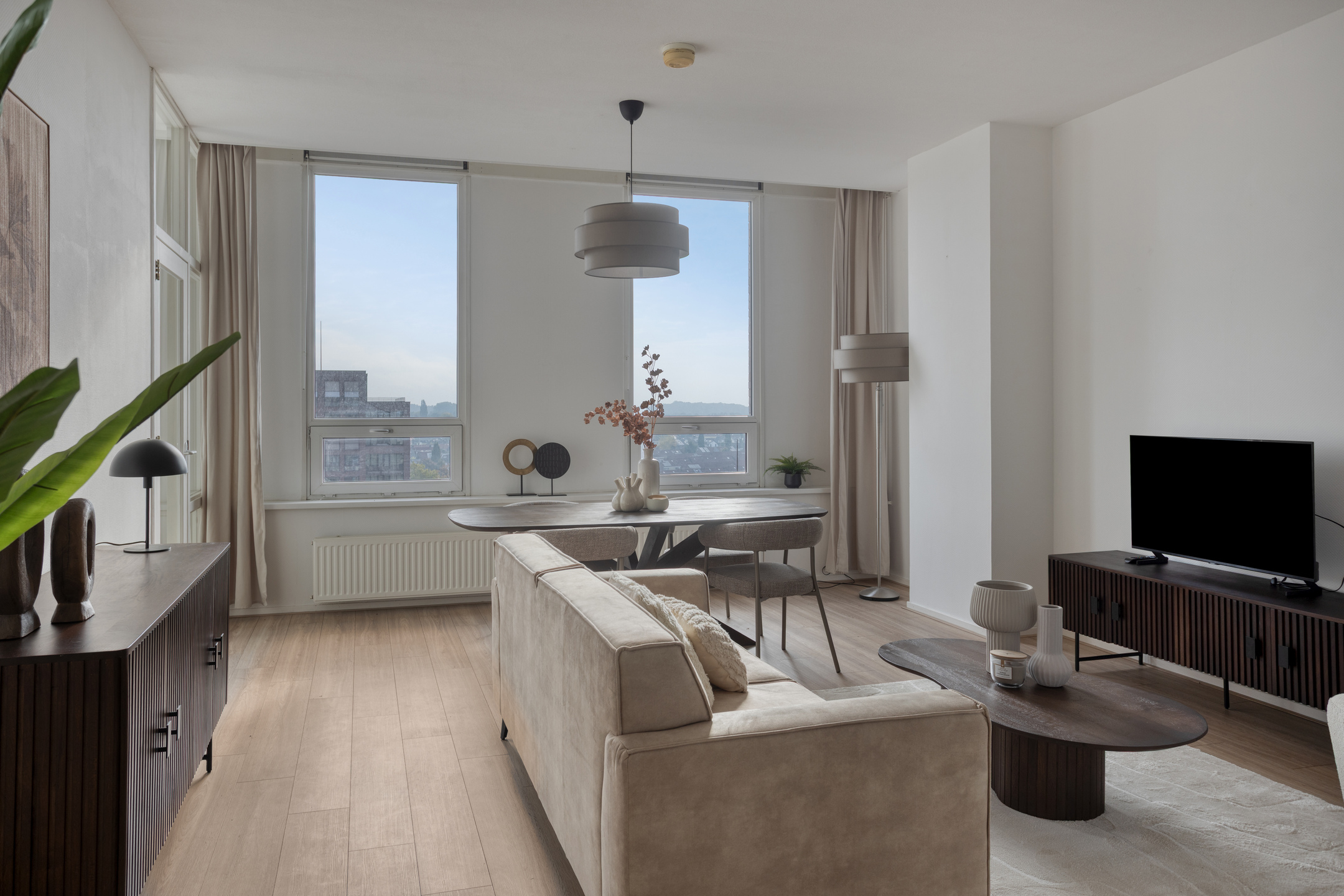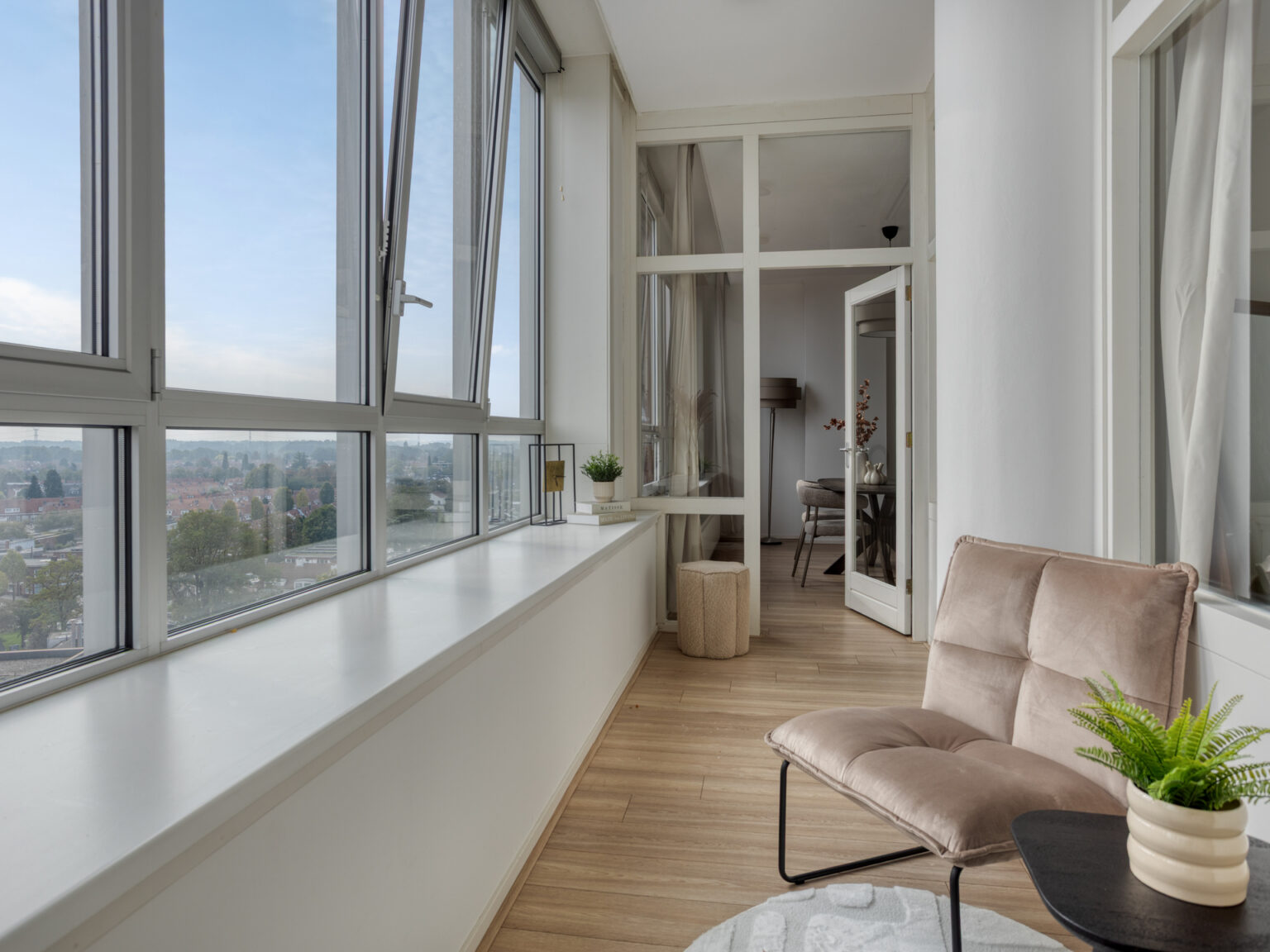 Boven de binnenstad van Enschede, op de 8e verdieping bevindt zich dit praktisch ingedeelde appartement met de volgende indeling: