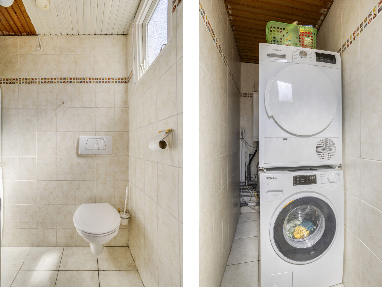 Entree/hal met trapopgang, sfeervolle en zeer lichte woonkamer met een houten vloer, openslaande tuindeuren en een provisiekelder. Aan de achterzijde bevindt zich de aangebouwde keuken v.v. een inductie-kookplaat, afzuigkap, oven, koelkast, vriezer en vaatwasser, en een portaal met toiletruimte en met ruimte voor de wasmachine en droger.