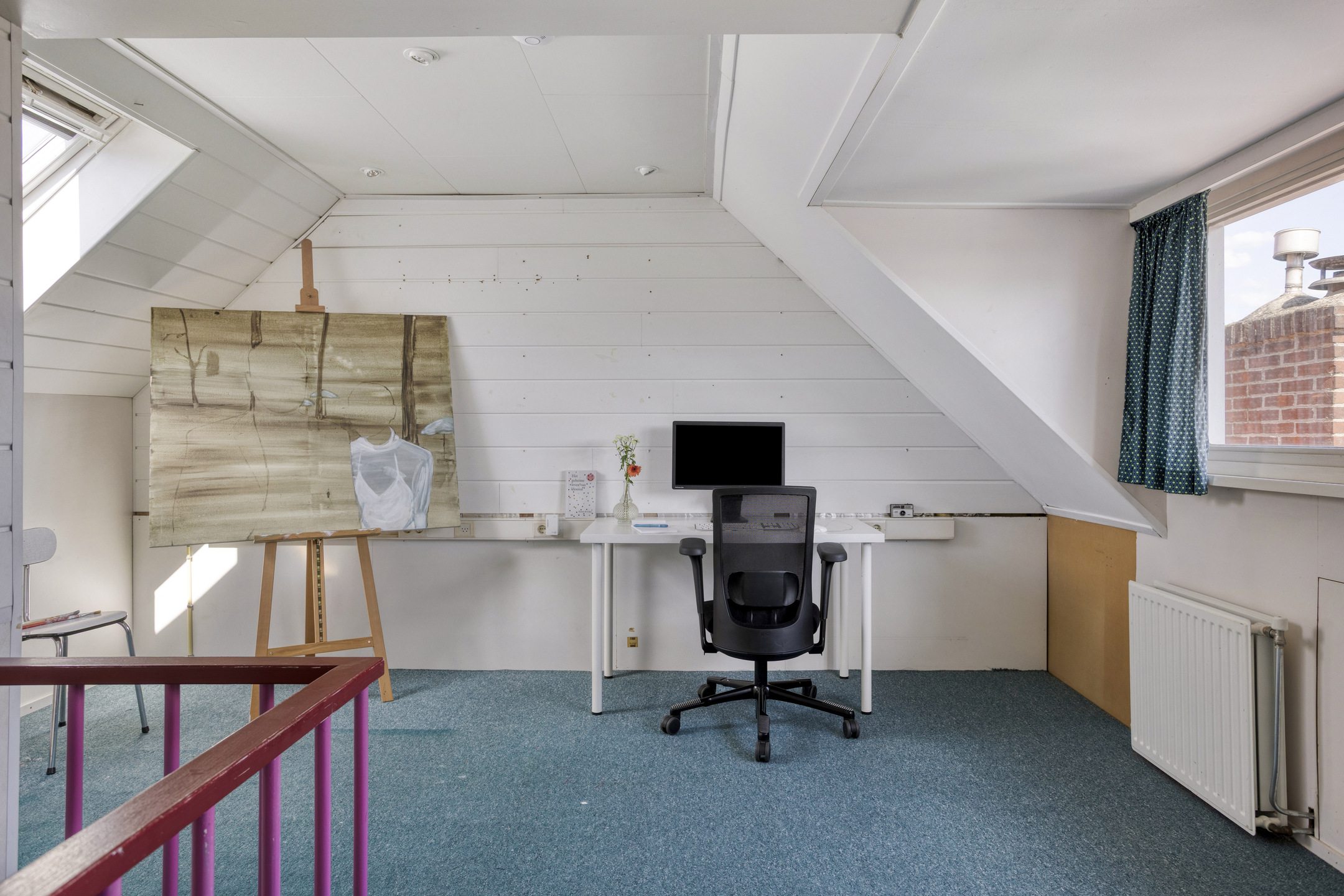 Middels een vaste trap te bereiken ruime zolder met grote zolderkamer v.v. een dakkapel en bergruimte.