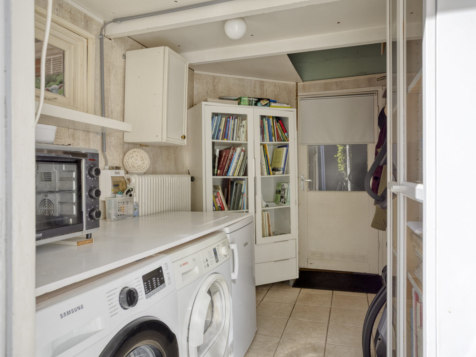Achterin de tuin vind je een praktische berging en een ruime garage, ideaal voor opslag, hobby’s of het parkeren van een voertuig.