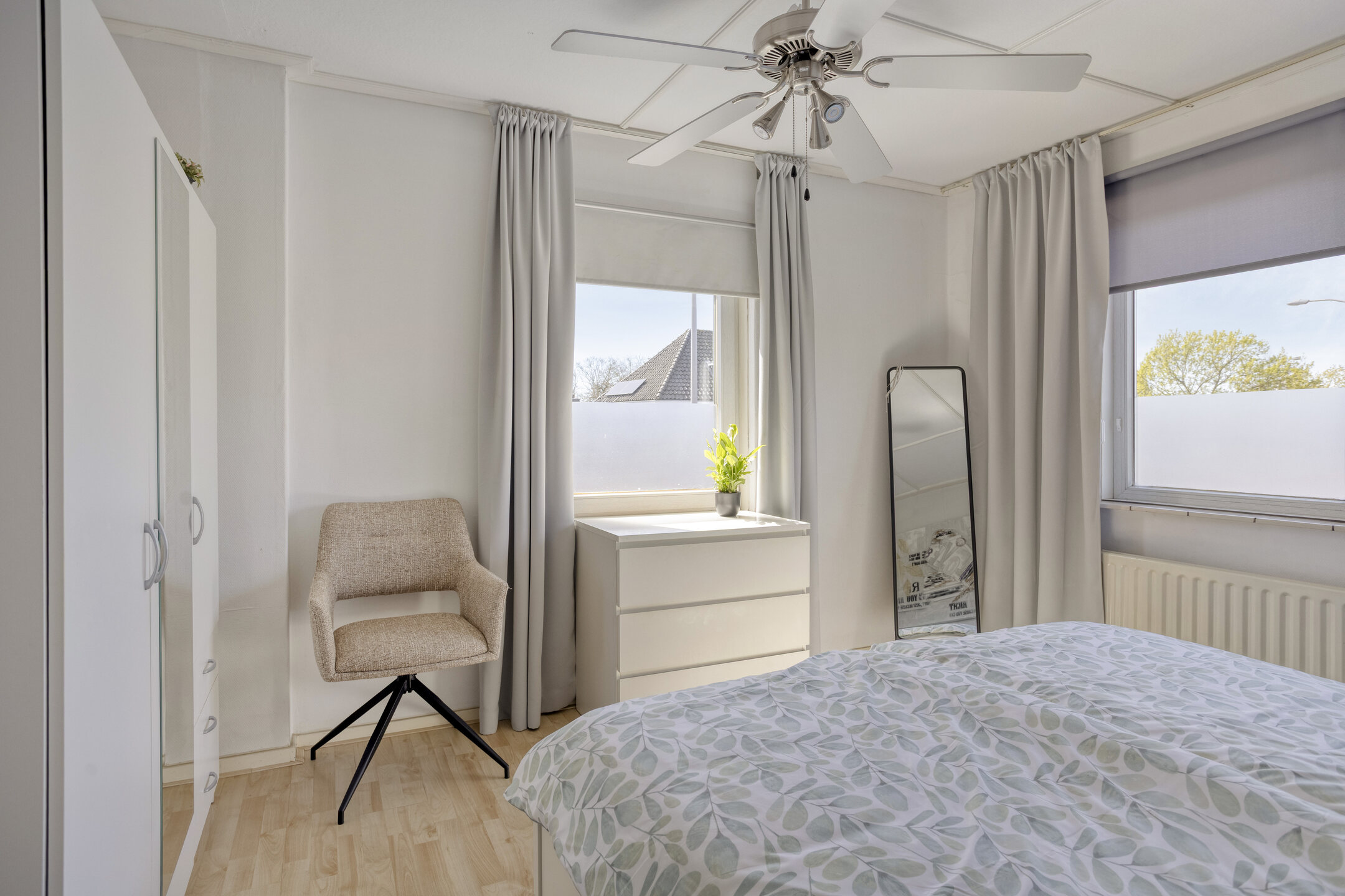 Via de overloop heb je toegang tot twee slaapkamers en de badkamer. De grootste slaapkamer ligt aan de achterzijde en biedt voldoende ruimte voor een tweepersoonsbed. De tweede slaapkamer bevindt zich aan de voorzijde en is ideaal als kinder-, werk- of logeerkamer. Via deze slaapkamer heb je toegang tot het balkon. De badkamer (2016) is netjes ingedeeld en voorzien van een douche, ligbad, wastafel en toilet. Zowel op de overloop als in de badkamer is praktische bergruimte gerealiseerd met vaste kasten.