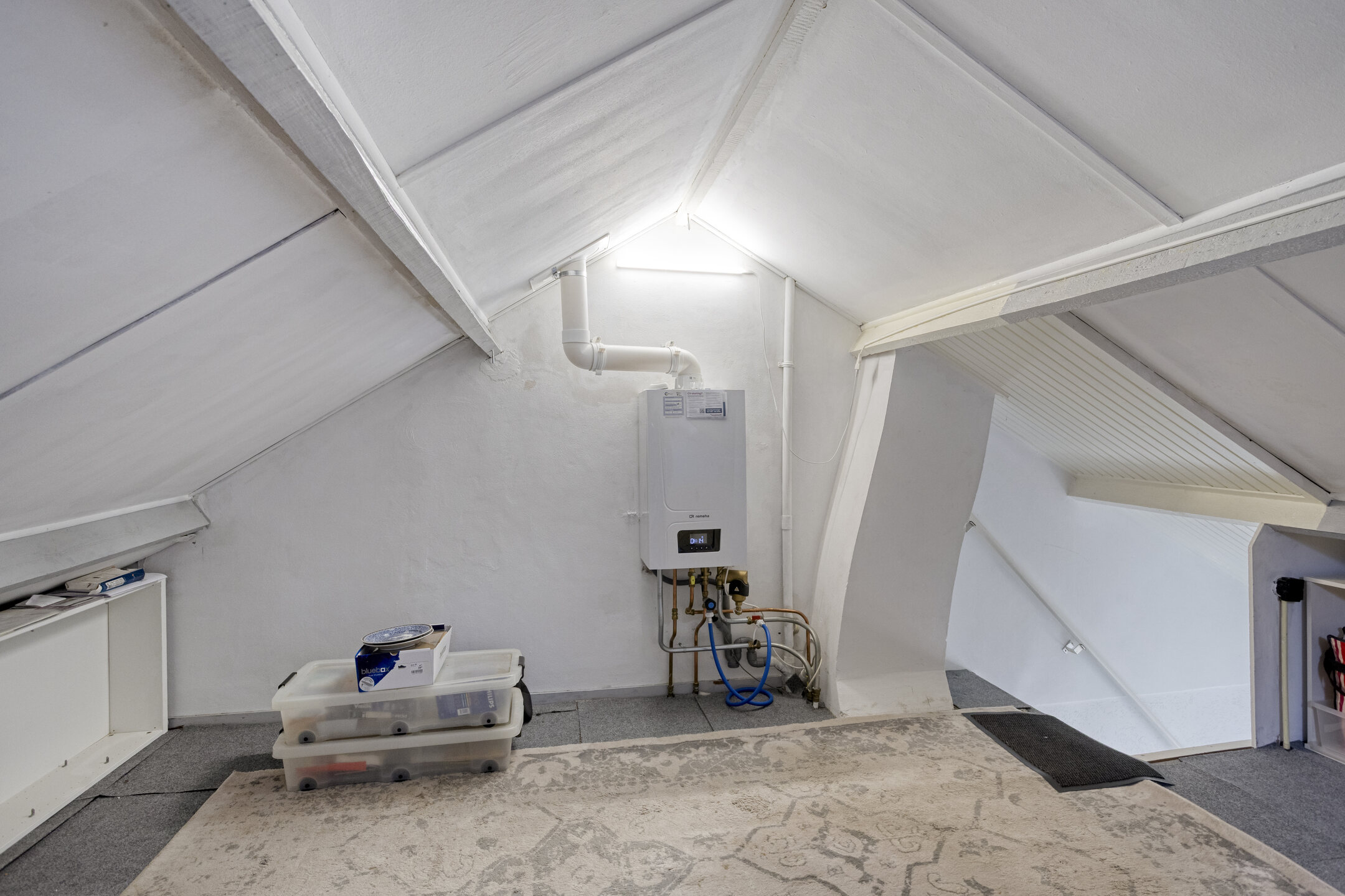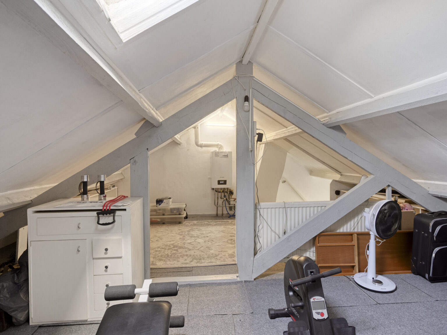 Je bereikt de zolderverdieping via een vaste trap. Hier kom je uit in een open zolderkamer. Deze ruimte is multifunctioneel en kan bijvoorbeeld worden gebruikt als extra slaapkamer, werkruimte of hobbykamer.