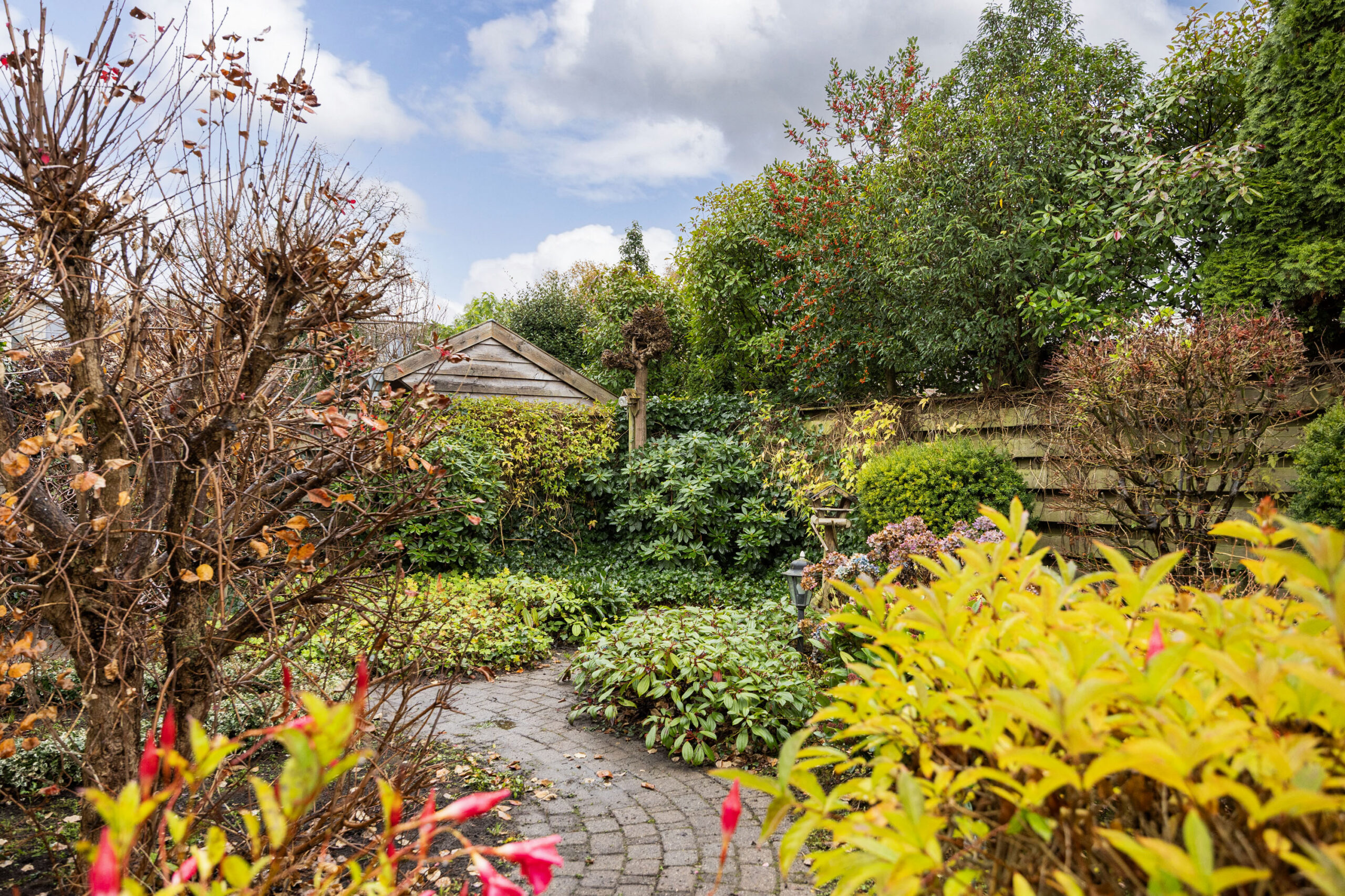 De woning beschikt over een aangebouwde stenen garage met ruime oprit, geschikt voor 2 auto’s. De achtertuin is groen aangelegd en biedt de nodige privacy.