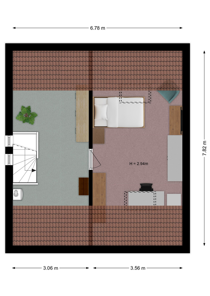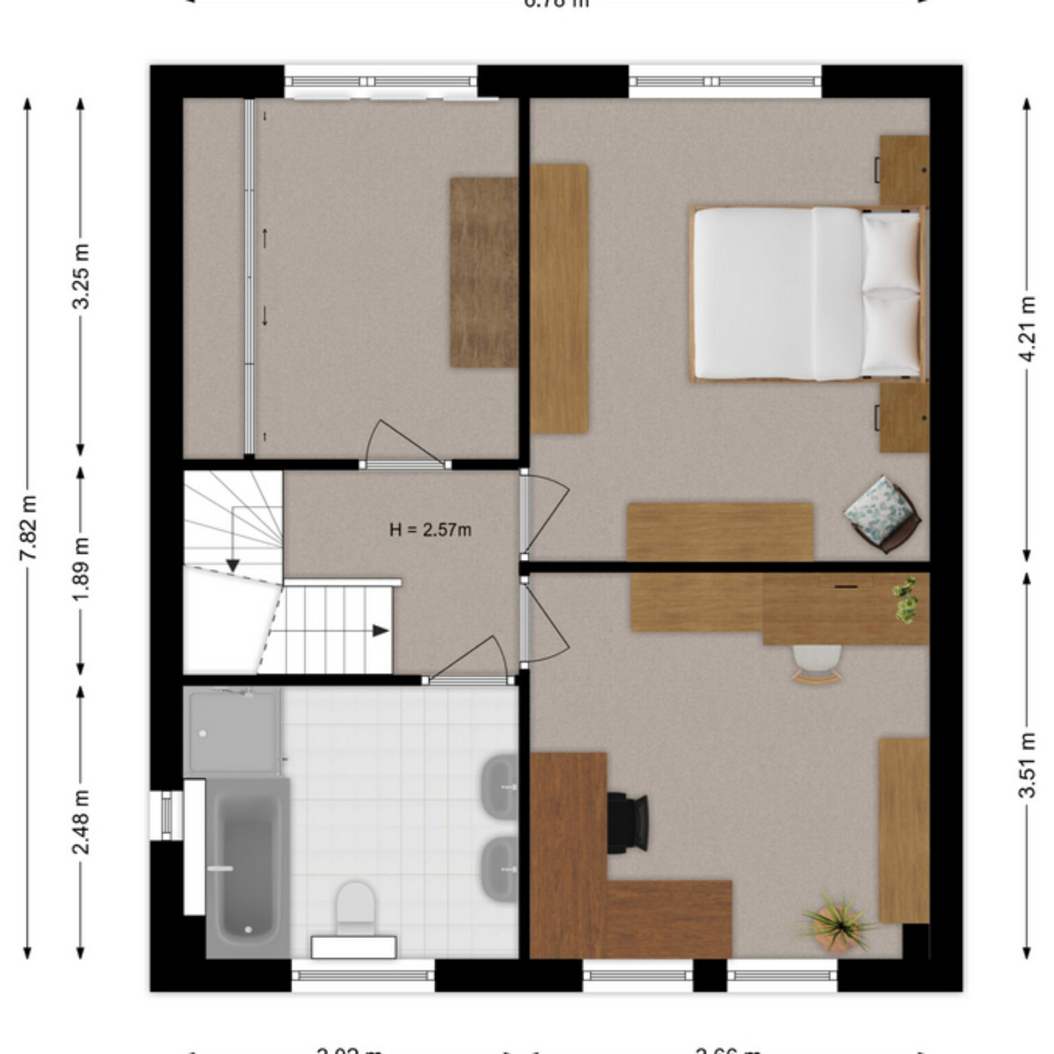De vaste trap brengt je naar de tweede verdieping met een ruime overloop met CV-opstelling. Ook is hier nog een vierde slaapkamer aanwezig over de volledige diepte van de woning, met aan beide zijden een dakraam.
