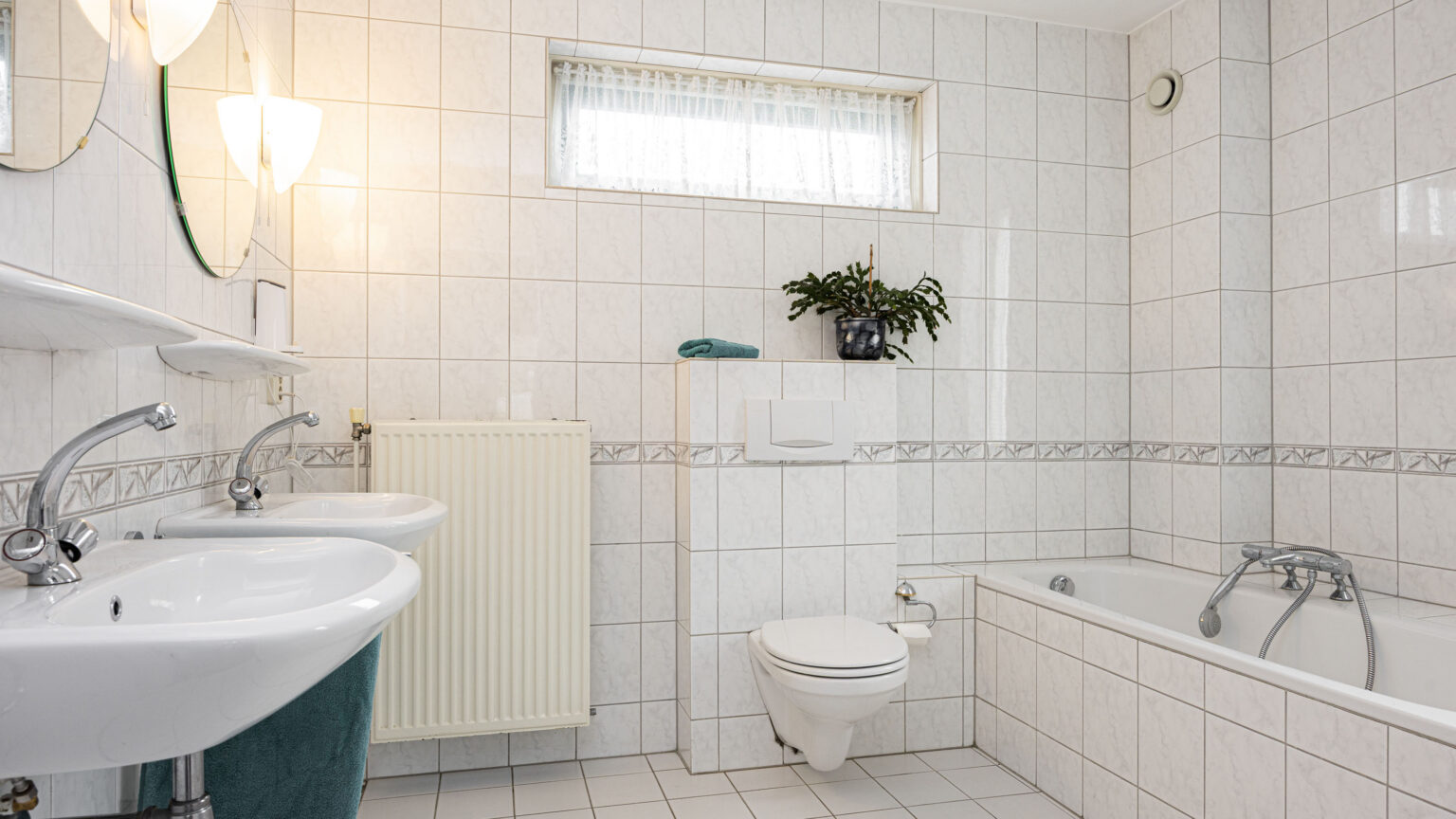 Op de eerste verdieping vind je drie ruime slaapkamers en de royale badkamer met een ligbad, separate douche, een toilet en een dubbele wastafel.