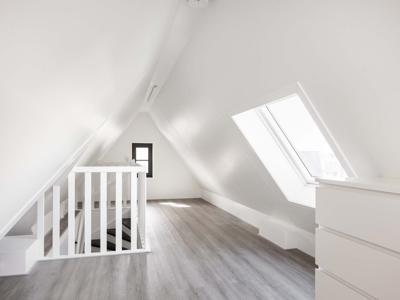 Middels vaste trap te bereiken zolderetage over de gehele diepte van de woning. Hierdoor is een erg bruikbare ruimte ontstaan, voorzien van voldoende daglicht en onverminderd ruimte voor opslag van spullen en bijvoorbeeld plek voor de mechanische ventilatie en omvormer.