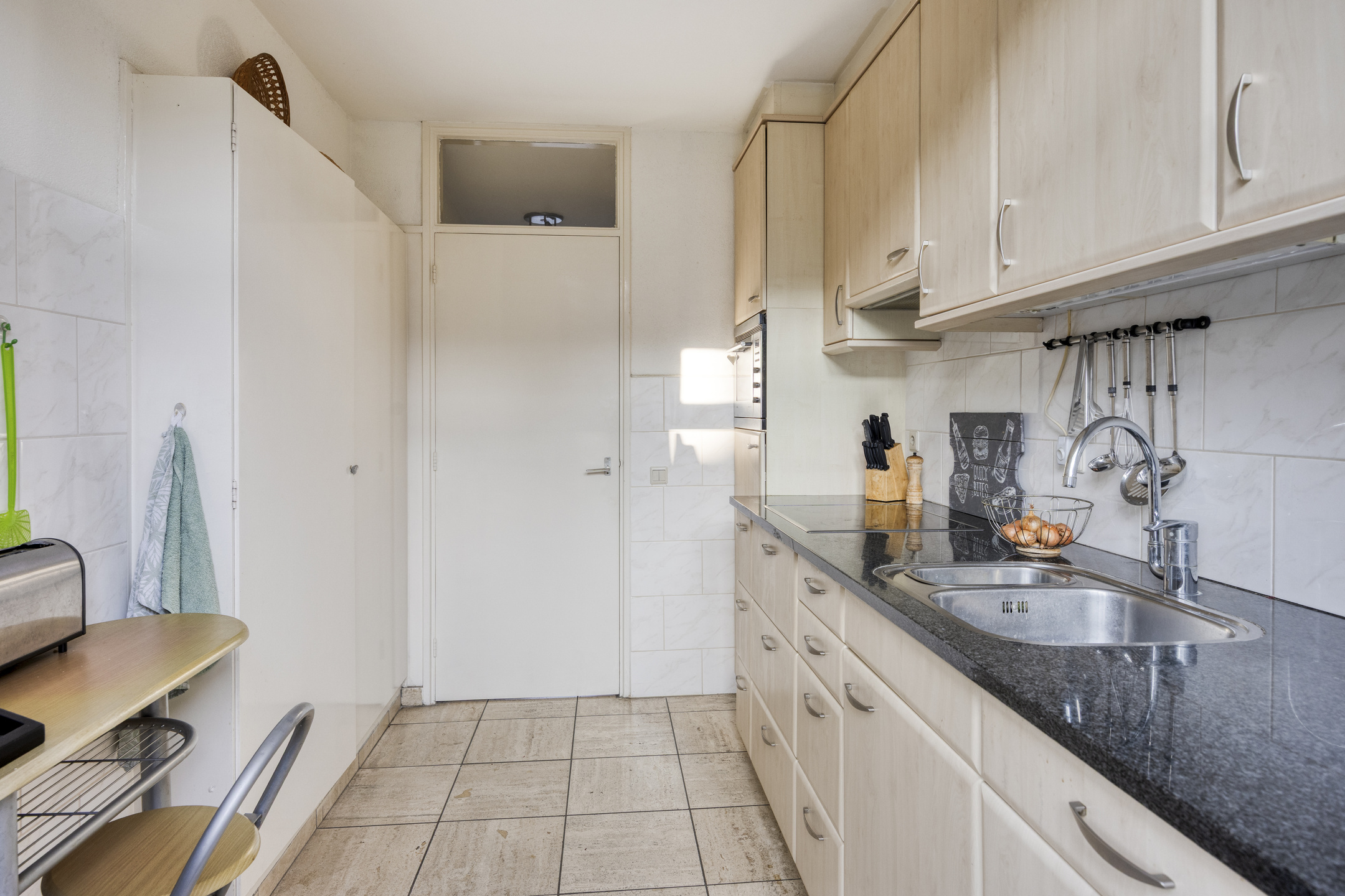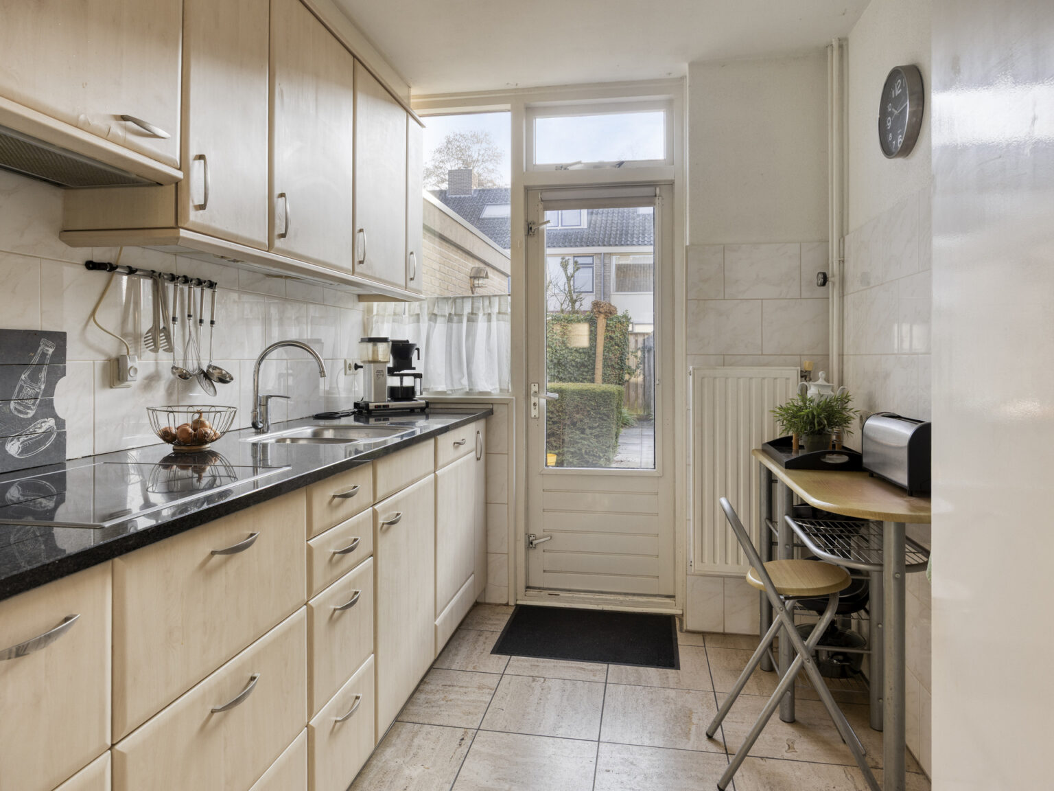 Je betreedt de woning via de hal met hangend toilet met fontein, garderobe, trapkast en trapopgang. Via de hal kom je in de doorzonwoonkamer met plavuizenvloer en deur naar het terras/de tuin. Vanuit de hal is tevens de dichte keuken te bereiken voorzien van een 4-pits inductie kookplaat, afzuigkap, combi-magnetron, koelkast, vaatwasser en een granieten aanrechtblad. Ook vanuit de keuken een deur naar het terras/de tuin.