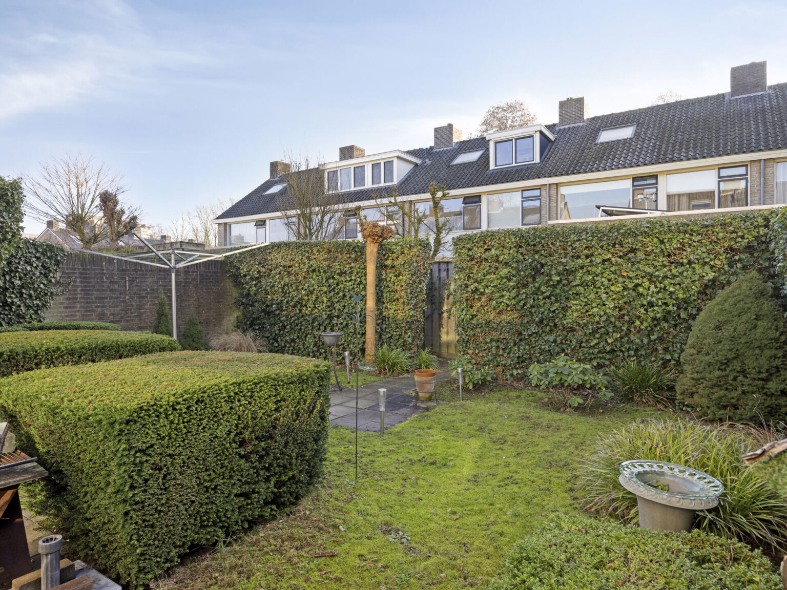 De voortuin is recent vernieuwd en onderhoudsvriendelijk. De verzorgde achtertuin is eveneens onderhoudsvriendelijk en te bereiken via de garage, de woonkamer en de keuken. De tuin is op het zonnige zuidoosten gesitueerd en via een achterom te bereiken.