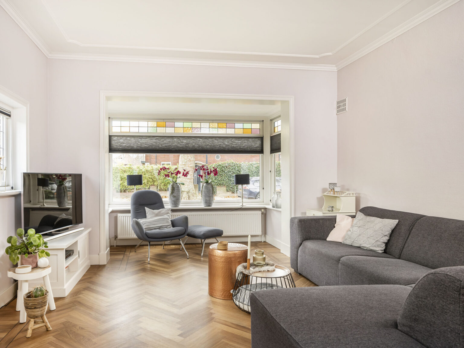 De karakteristieke details, waaronder de kenmerkende glas-in-loodramen, zijn met zorg behouden. Tegelijkertijd is het wooncomfort volledig aangepast aan de eisen van deze tijd. Zo beschikt de woning over vloer- en dakisolatie en is deze bovendien uitgerust met maar liefst 19 zonnepanelen (2020). Een bijzonder gunstig pakket aan voorzieningen voor een oudere woning, waarmee je aanzienlijk kunt besparen op de energierekening.