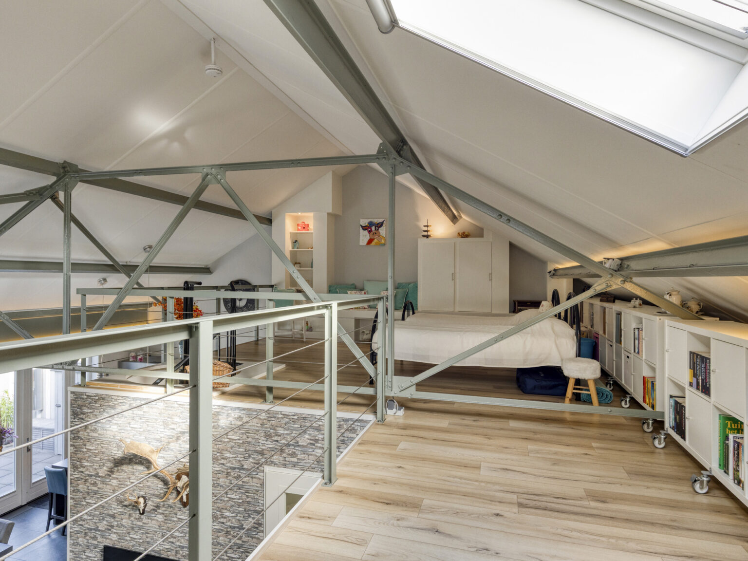 Op de vide vind je een extra lichte ruimte met dakraam en uitzicht op de woonkamer en het terras. Ideaal als werkplek, lounge of derde slaapkamer.