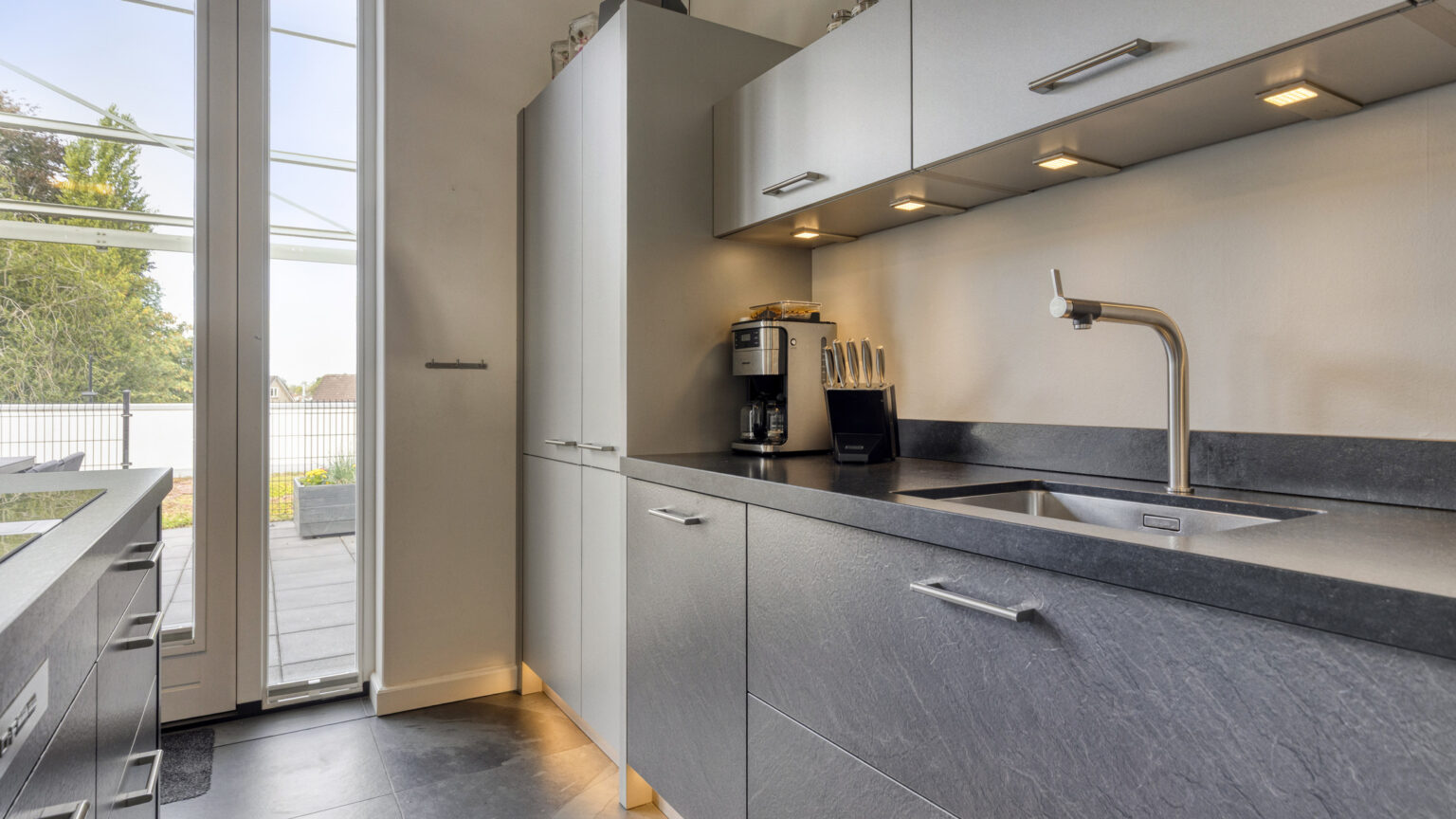 Voor wie graag kookt en geniet van goed gezelschap, is de moderne keuken met kookeiland een absolute meerwaarde. De luxe open keuken is onder andere uitgerust met een inductiekookplaat met downdraft-afzuigsysteem, een oven, een stoomoven en een vaatwasser. De woning beschikt daarnaast over twee slaapkamers, een ruime badkamer, een separaat toilet en een sfeervolle vide. Deze vide wordt momenteel gebruikt als logeerkamer, maar is ook uitstekend geschikt als werkplek, hobbyruimte of extra lounge.