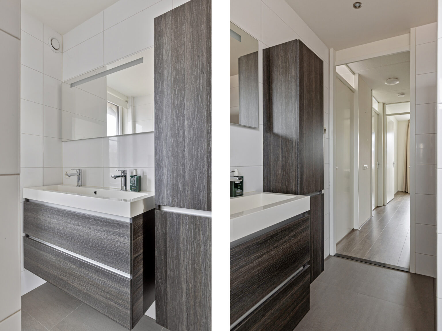 Via de overloop zijn de drie slaapkamers en een badkamer te bereiken. De twee slaapkamers aan de achterzijde beschikken over elektrische rolluiken. De moderne badkamer is uitgevoerd met een inloopdouche, toilet, wastafelmeubel met dubbele kraan en een designradiator.