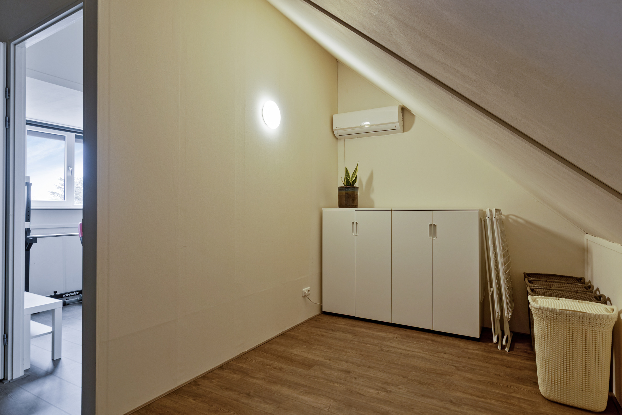 Middels een vaste trap is de tweede verdieping te bereiken. Hier bevindt zich de cv-installatie, witgoedaansluitingen en voldoende bergruimte. Daarnaast is er aan de voorkant een vierde slaapkamer gerealiseerd met dakkapel voorzien van rolluik. De zolderverdieping is tevens voorzien van airconditioning.