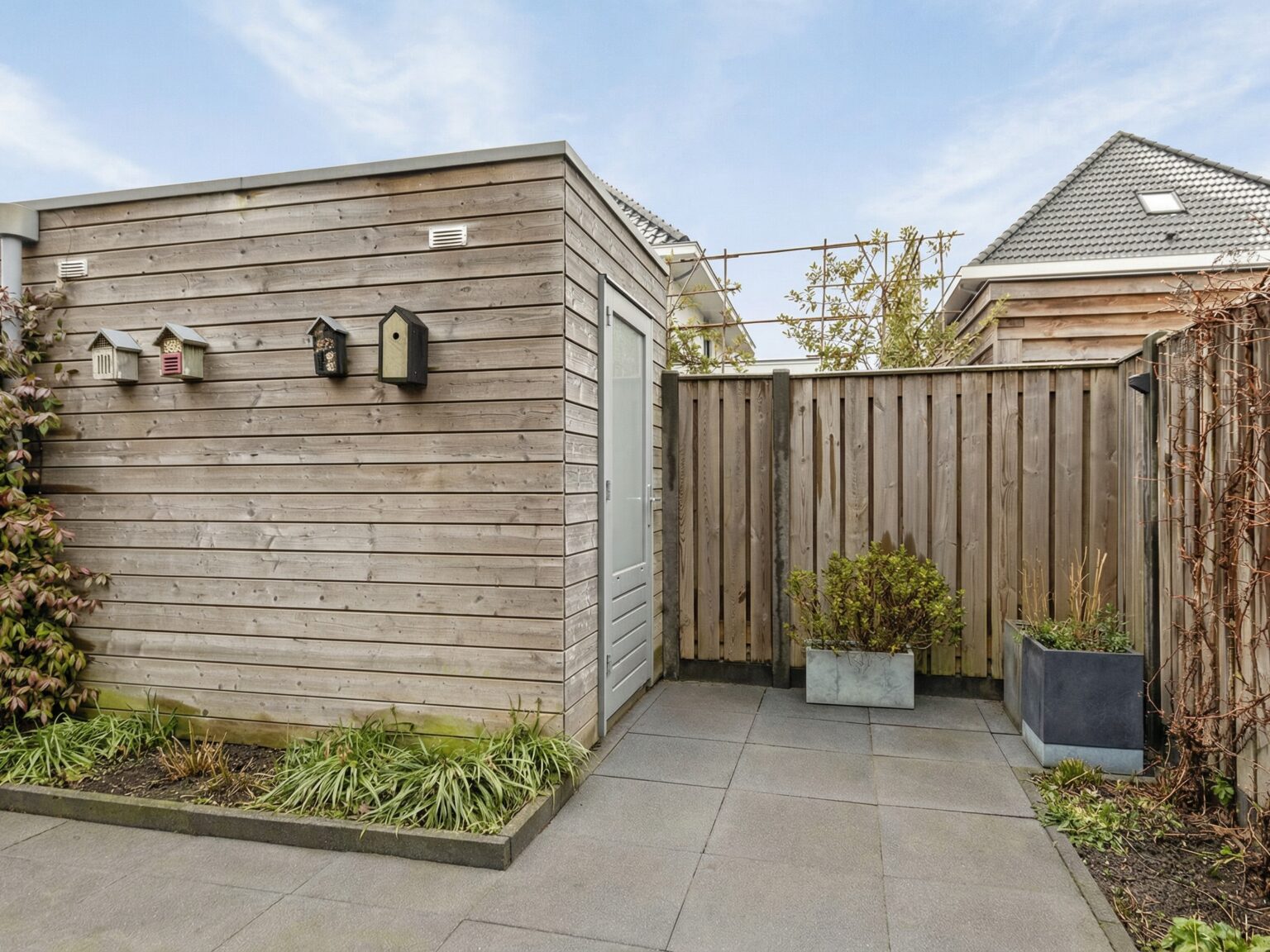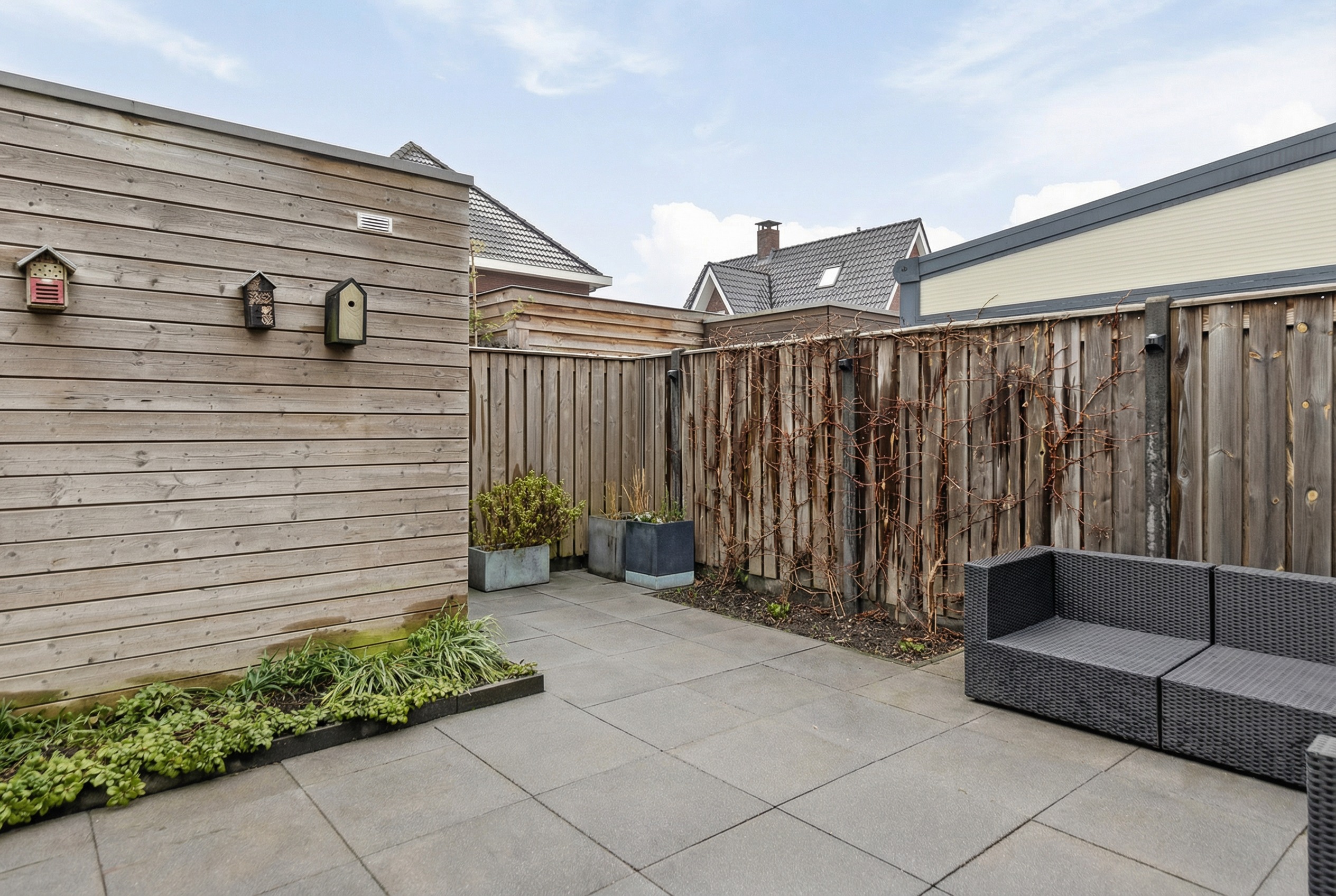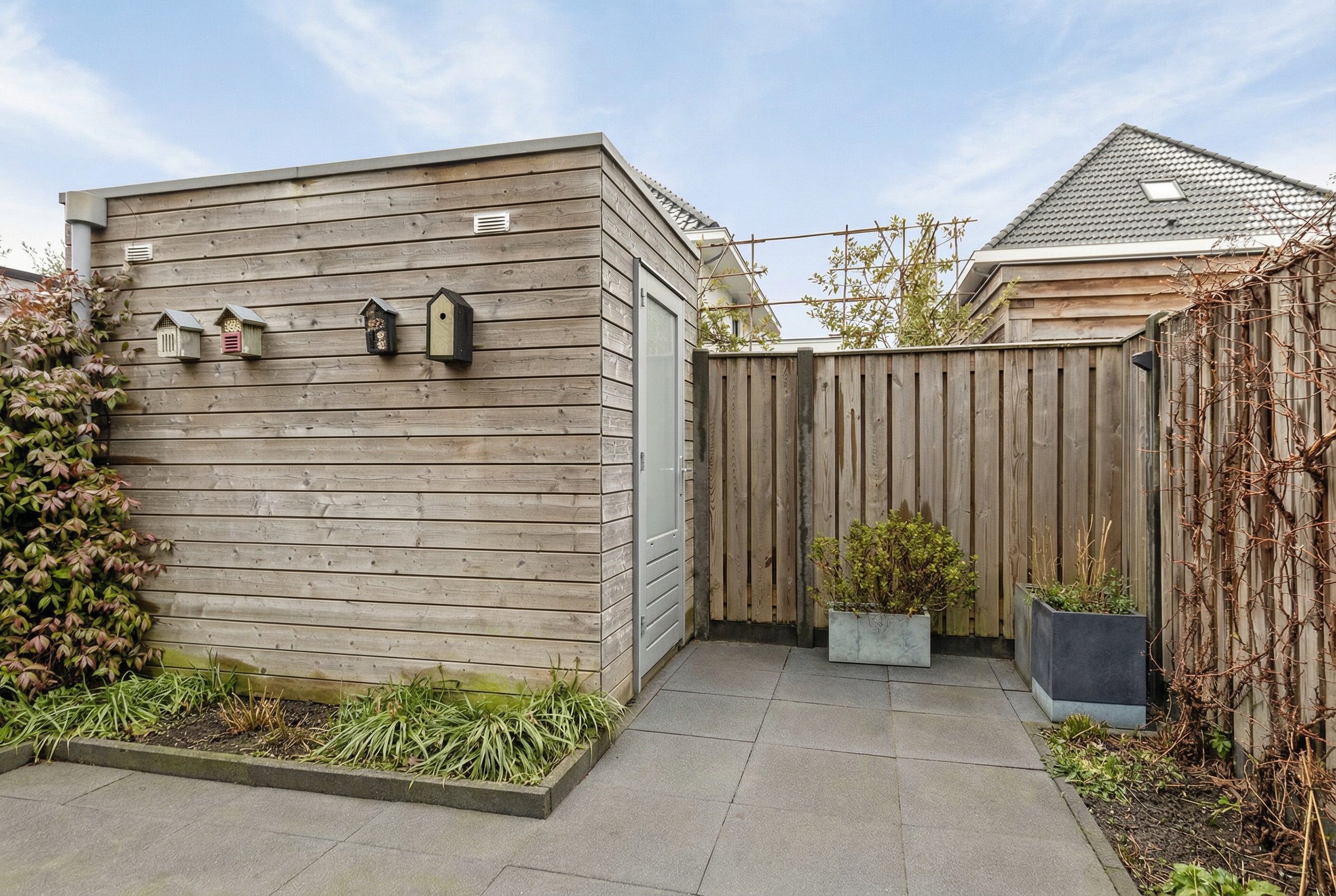 De verzorgde onderhoudsvrije achtertuin ligt op het zuidwesten waardoor je hier volop van de zon kunt genieten. Achterin de tuin bevindt zich een houten berging.