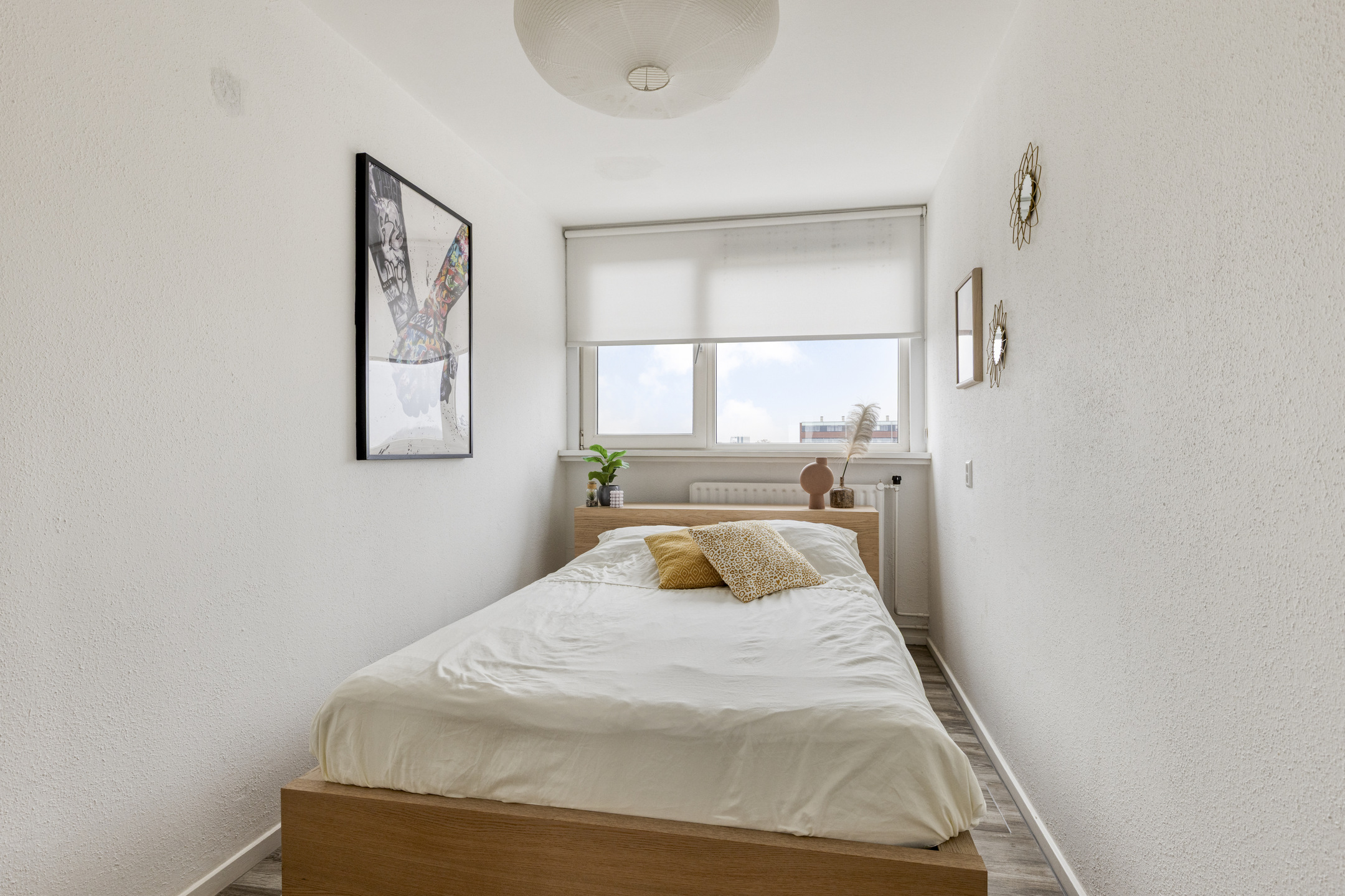 Het balkon sluit direct aan op de woonkamer en biedt een fijne plek om buiten te zitten. Hier kun je ontspannen na het werk of in het weekend, en dankzij de ligging op het zuidwesten geniet je van de middag- en avondzon!