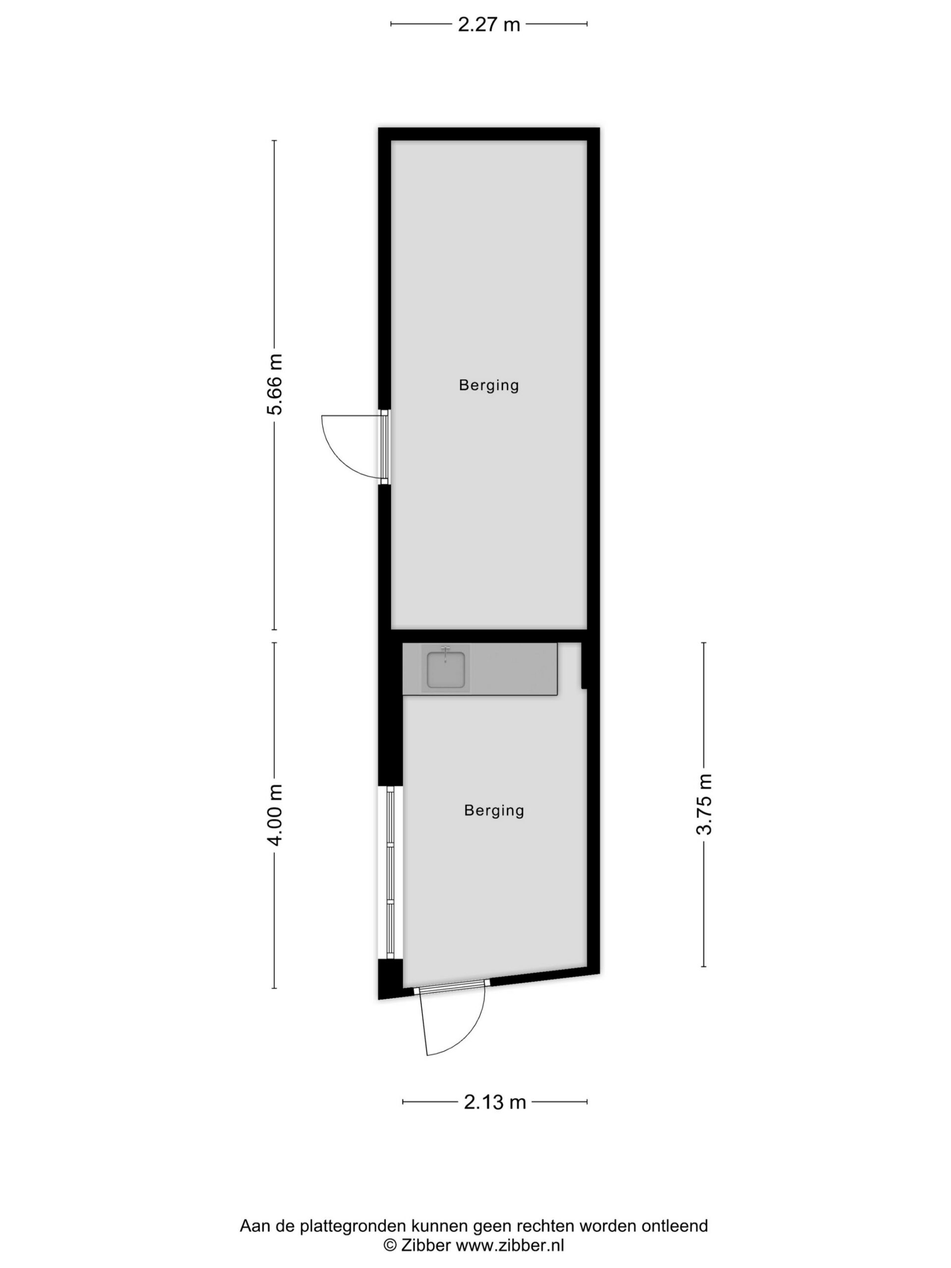 – Vrijstaande stenen berging van circa 19 m², verdeeld in 2 gedeeltes met ieder een eigen ingang;