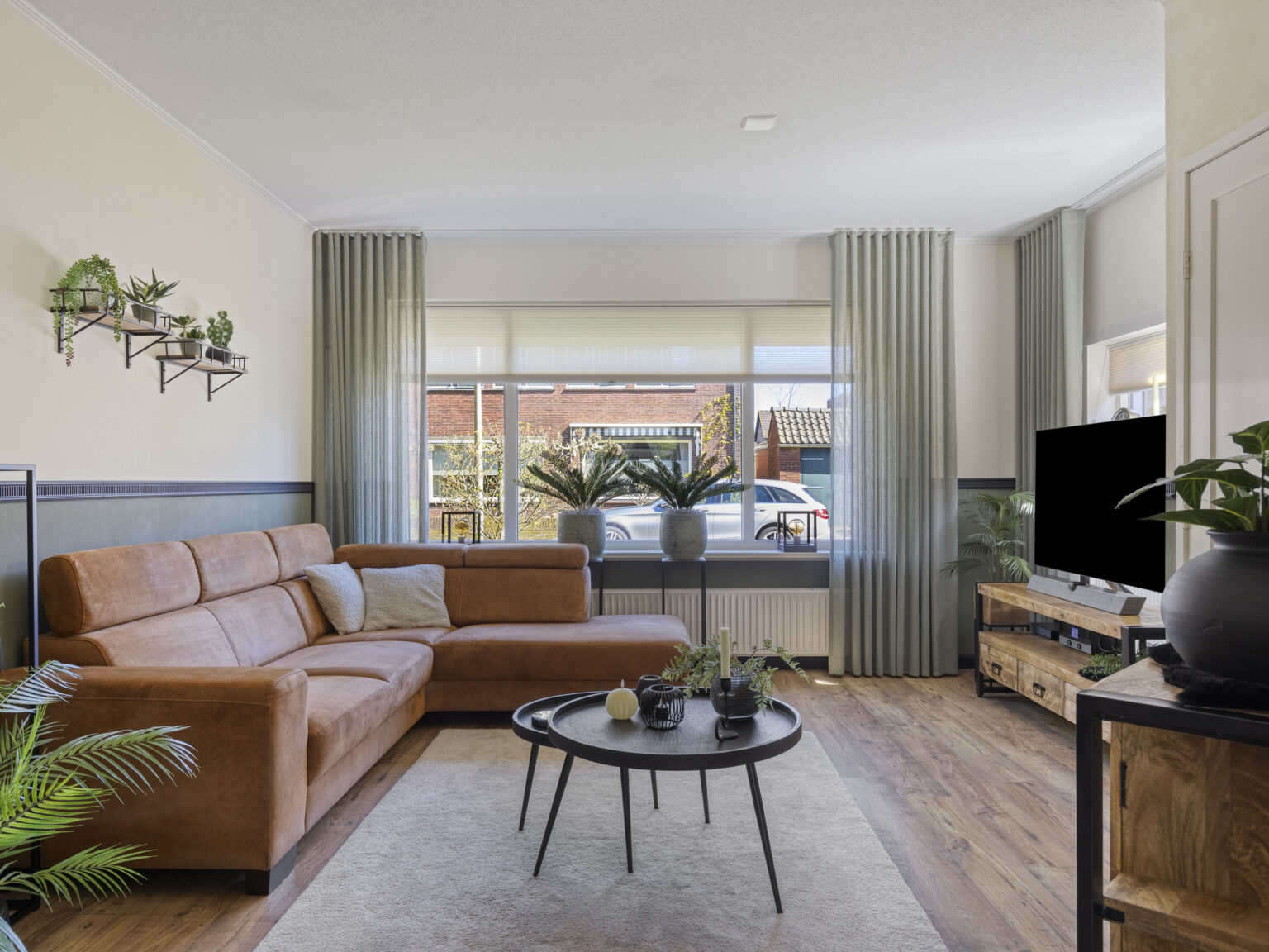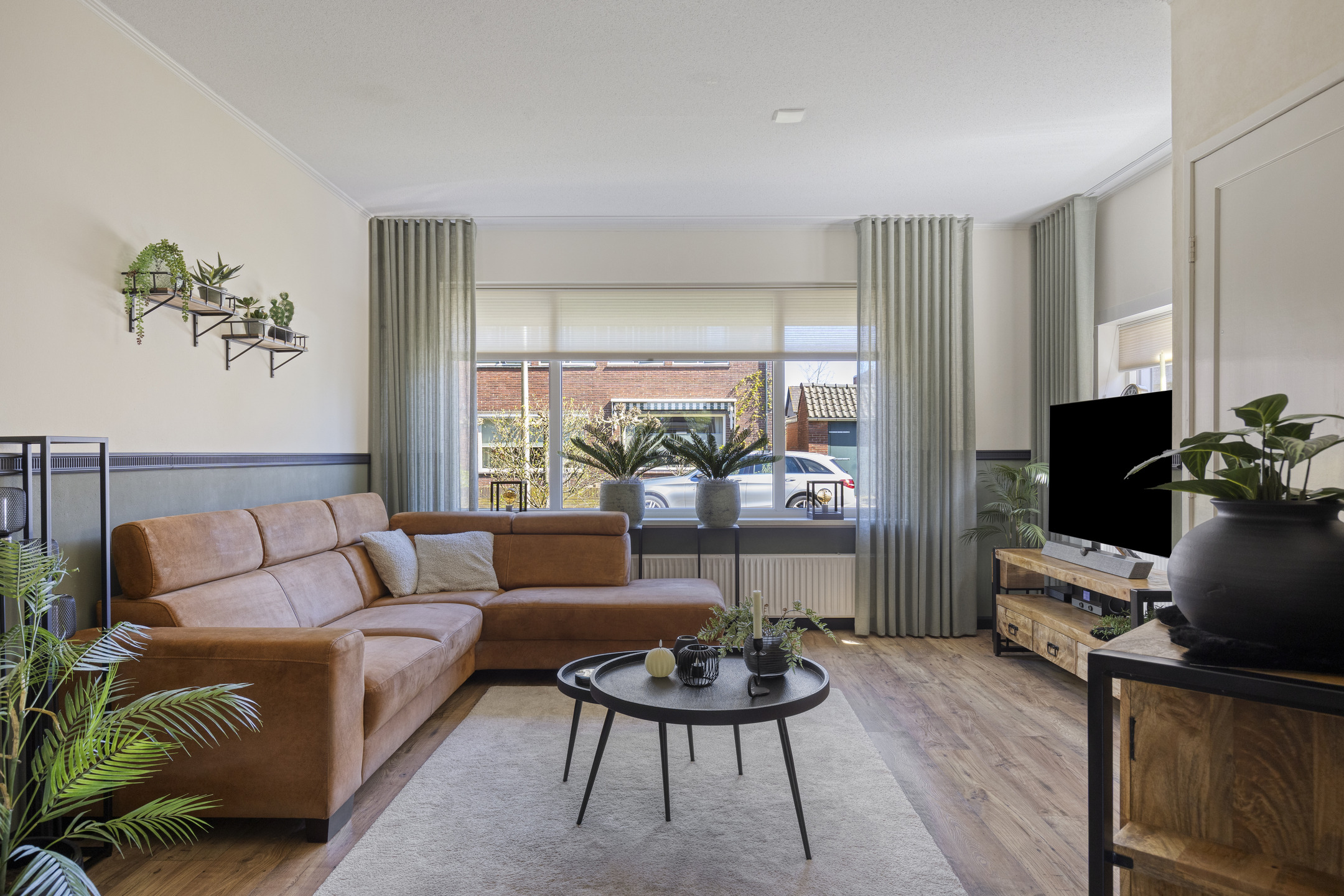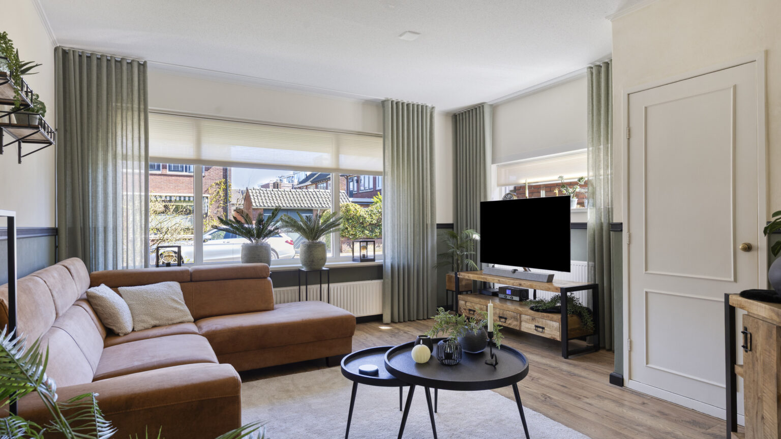 De woonkamer is heerlijk licht dankzij de grote raampartijen en is voorzien van onderhoudsarme kunststof kozijnen met triple glas, net als de rest van de woning.