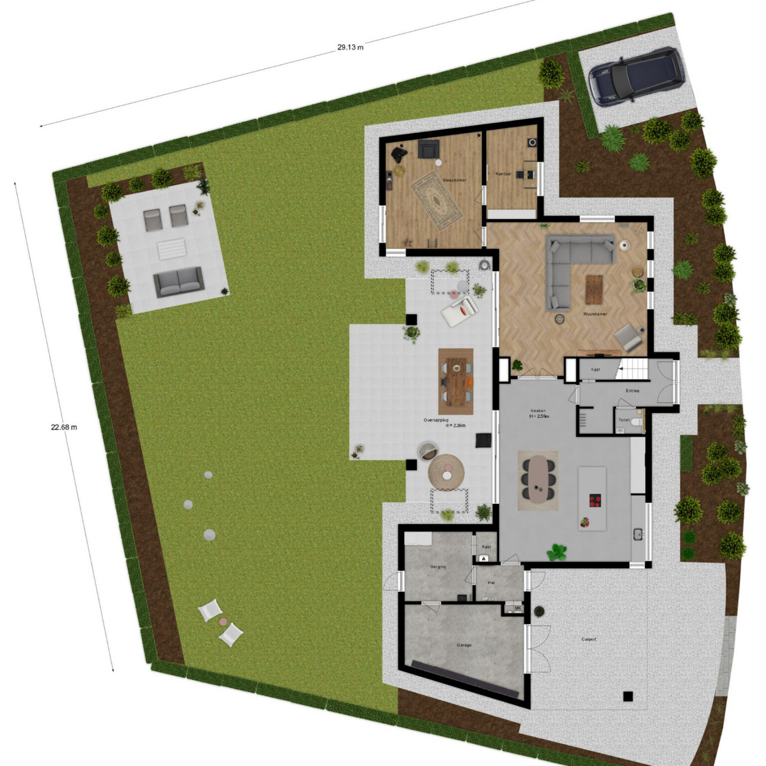 - Parkeerplaats, Garage met carport
