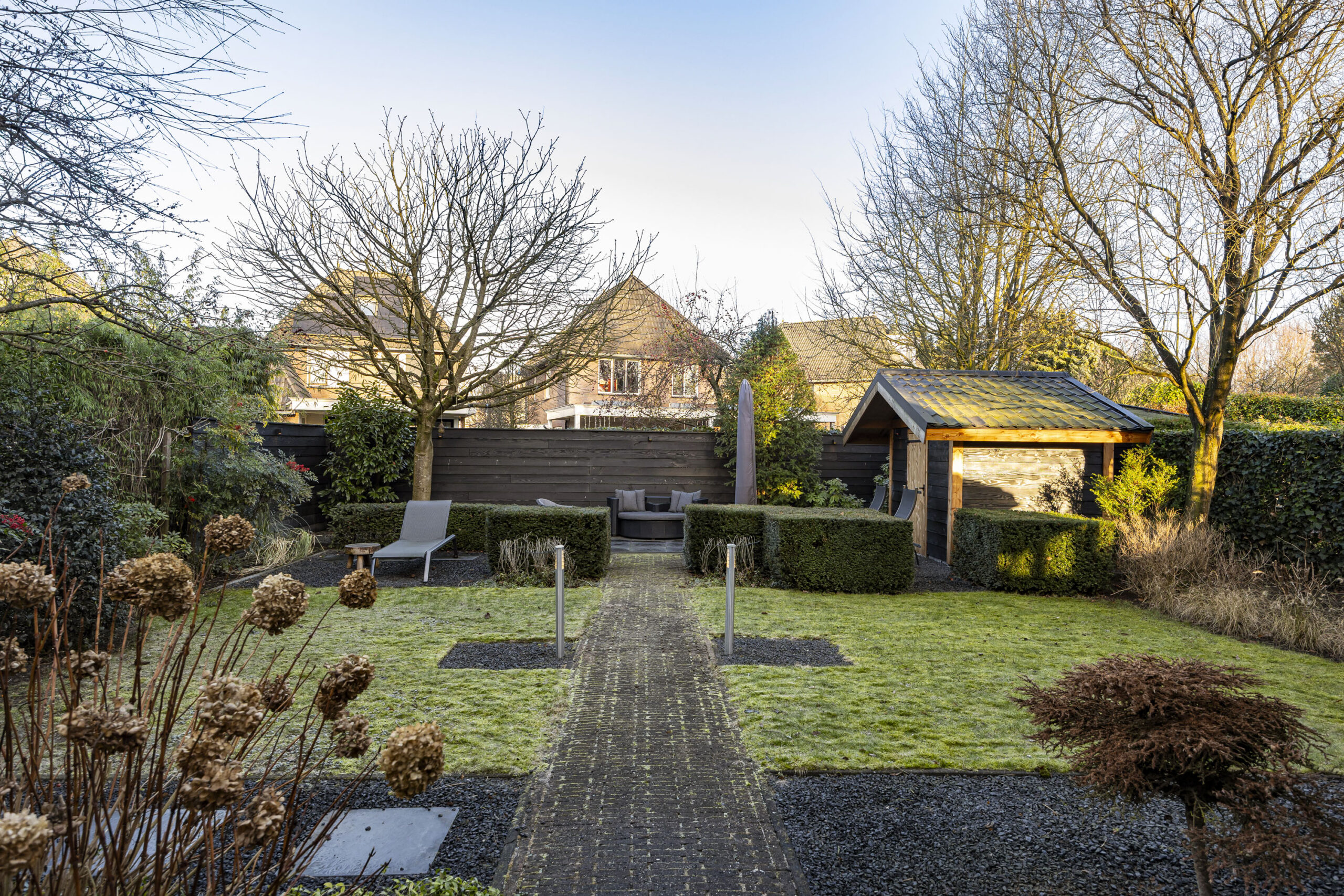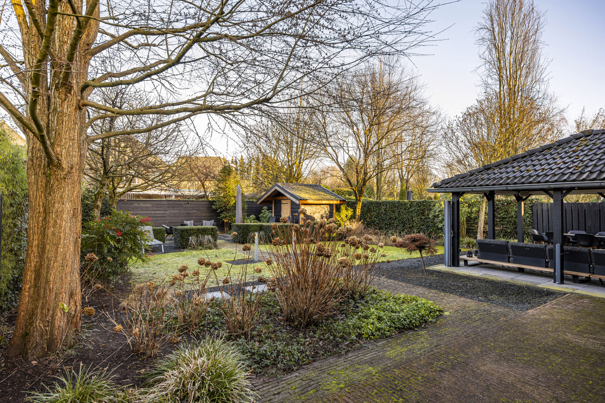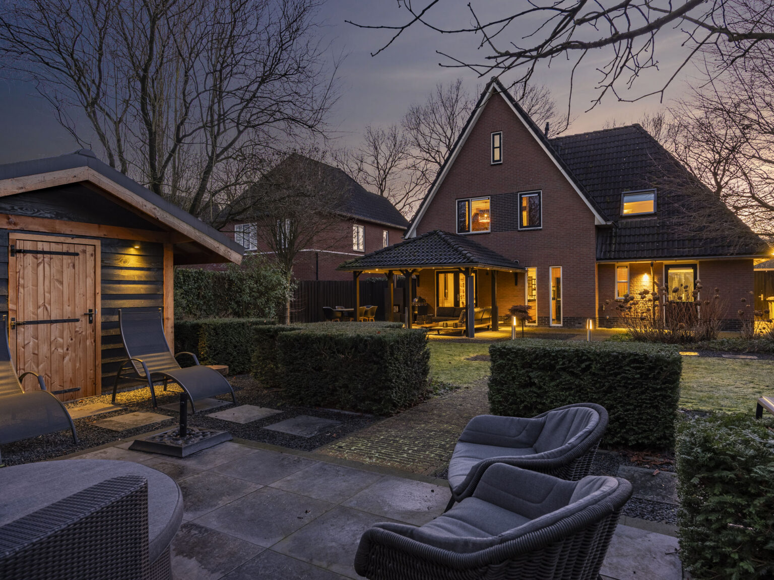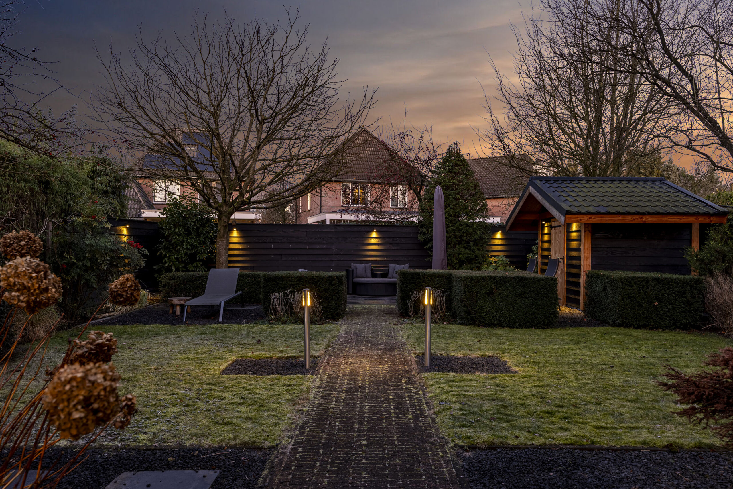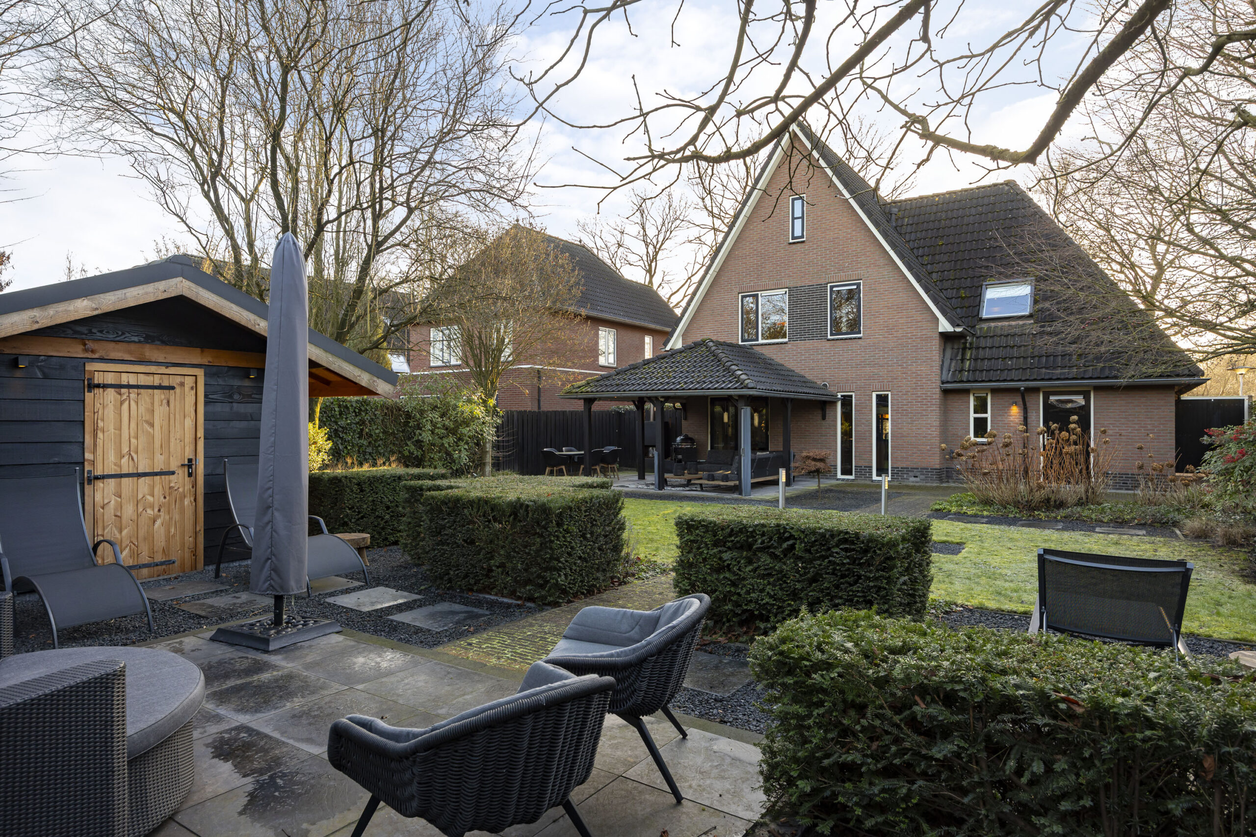 De woning is volledig geïsoleerd, voorzien van 12 zonnepanelen (2023) en beschikt over energielabel A. De tuin is met zorg en oog voor detail aangelegd, ligt rondom de woning en is bereikbaar via een handige zij-ingang. Onder de aan de woning gebouwde veranda geniet je beschut van het uitzicht op het groen. De tuin biedt een mooie afwisseling van groen en terrassen, waardoor er op elk moment van de dag een fijne plek in de zon of schaduw te vinden is. Dankzij de gunstige ligging ten opzichte van omliggende woningen is de privacy uitstekend; hier leef je buiten echt vrij en onbezorgd, of je nu geniet met het gezin, vrienden of familie.