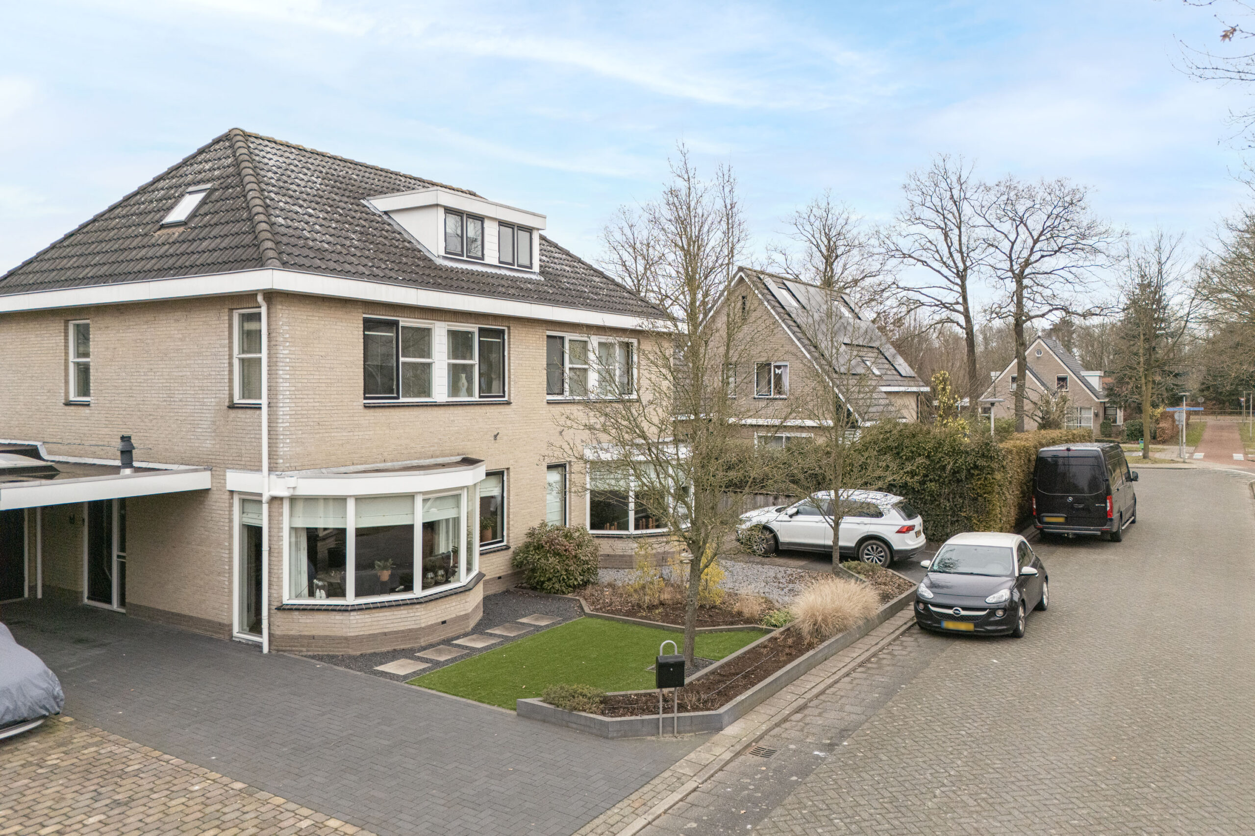– Inpandig bereikbare garage/berging en oprit voor 2 auto’s;