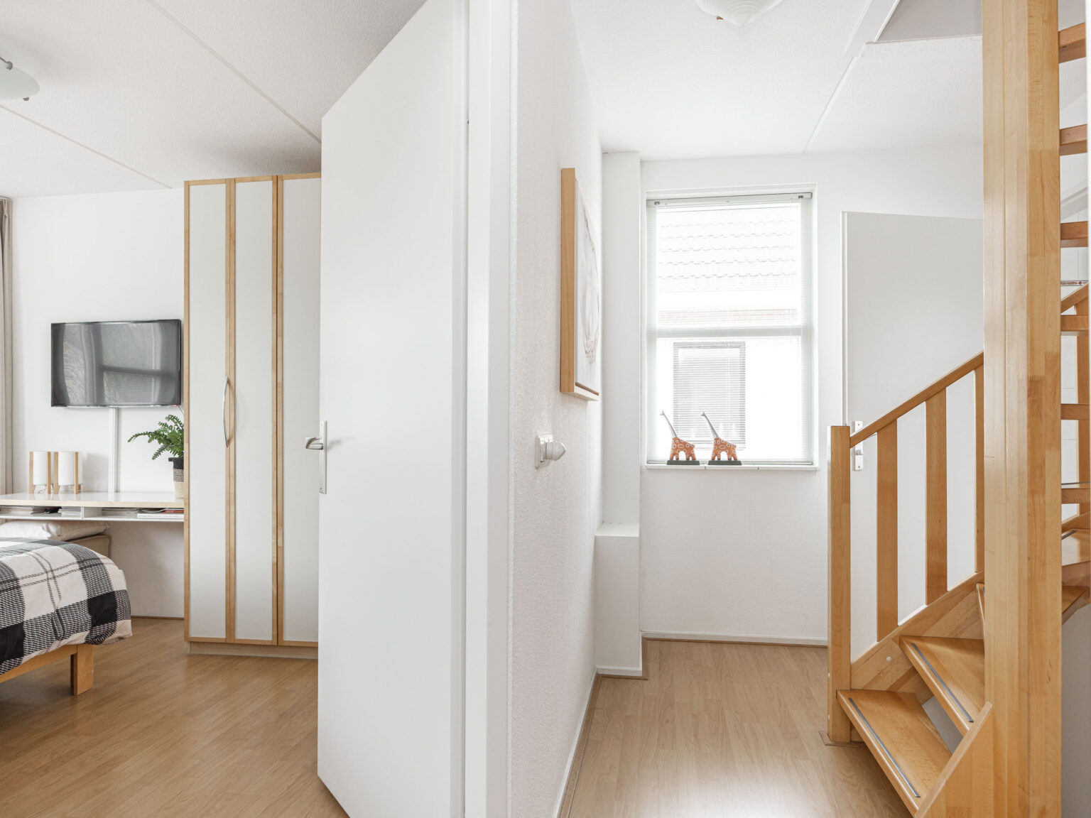 Via de vaste trap bereik je de tweede verdieping. Hier vind je een overloop, een praktische wasruimte met dakraam (2024), CV-opstelling en aansluitingen voor wasmachine/droger. Daarnaast is er een heerlijk lichte en ruime vierde slaapkamer met dakkapel en dakraam. Achter de knieschotten is veel bergruimte aanwezig.