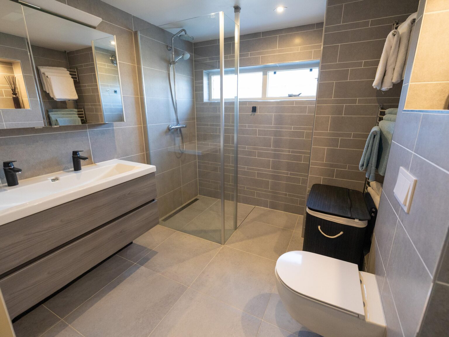 Op de begane grond is de woning royaal uitgebouwd, waardoor er een riante woonkamer en een uitzonderlijk grote woonkeuken zijn ontstaan – uniek voor dit type woning in de wijk. De afwerking is zeer fraai, met een luxe keuken voorzien van een spoel- en kookeiland met composiet aanrechtblad en hoogwaardige inbouwapparatuur. De begane grond beschikt over een fraaie PVC-vloer met vloerverwarming, dubbele deuren naar de tuin en een luxe waterdamphaard die een stijlvolle scheiding vormt naar de werk-/speelruimte aan de voorzijde van de woning.