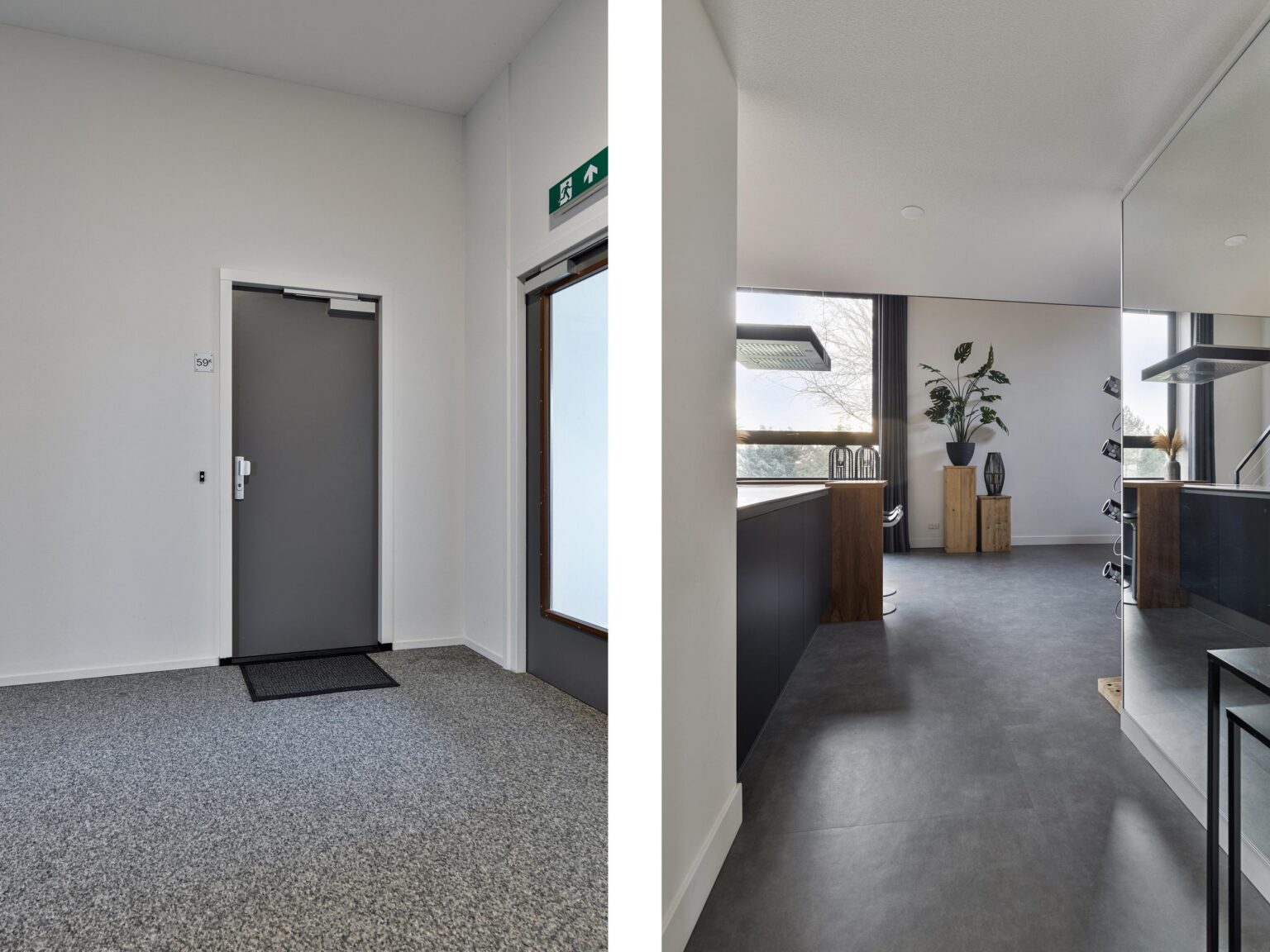 De entree met brievenbussen en beltableau biedt toegang tot een mooi ‘Atrium”, een opvallend grote en lichte ruimte van waaruit de individuele appartementen bereikbaar zijn Middels een lift en twee trapopgangen kom je op de eerste woonlaag.