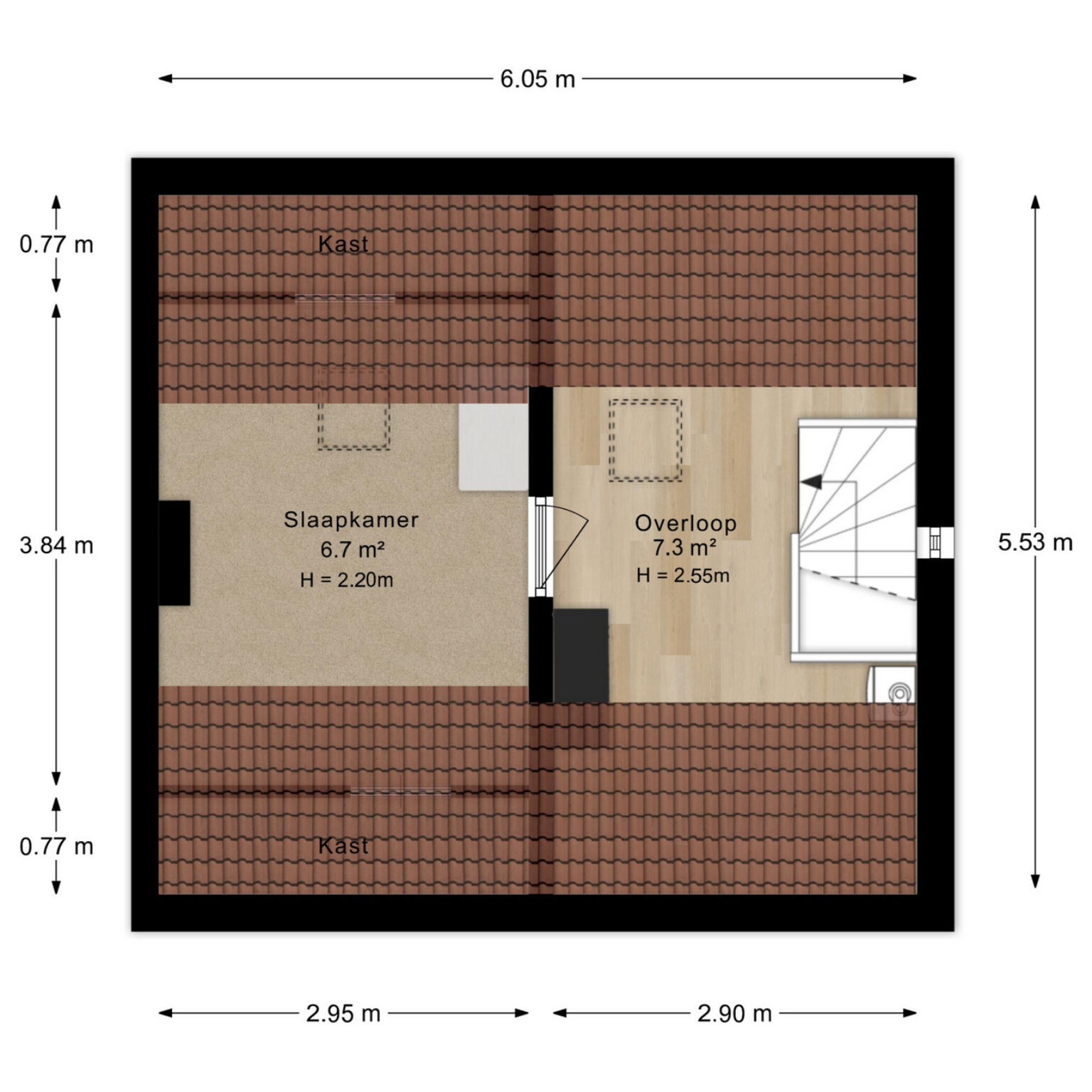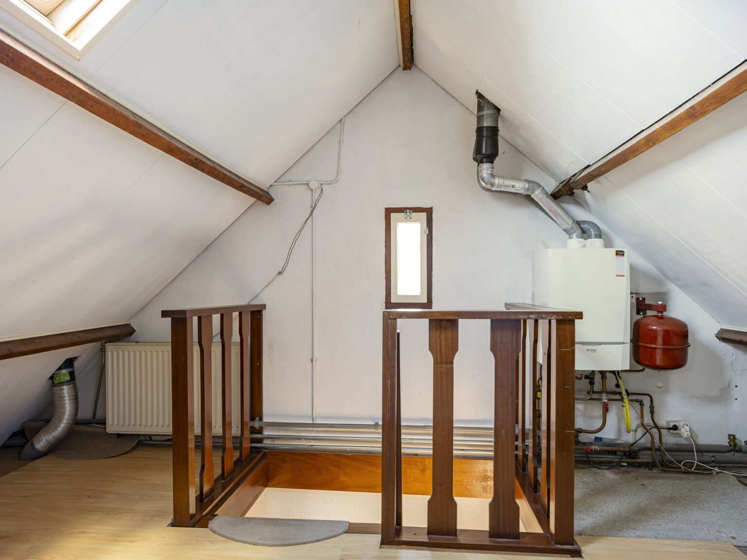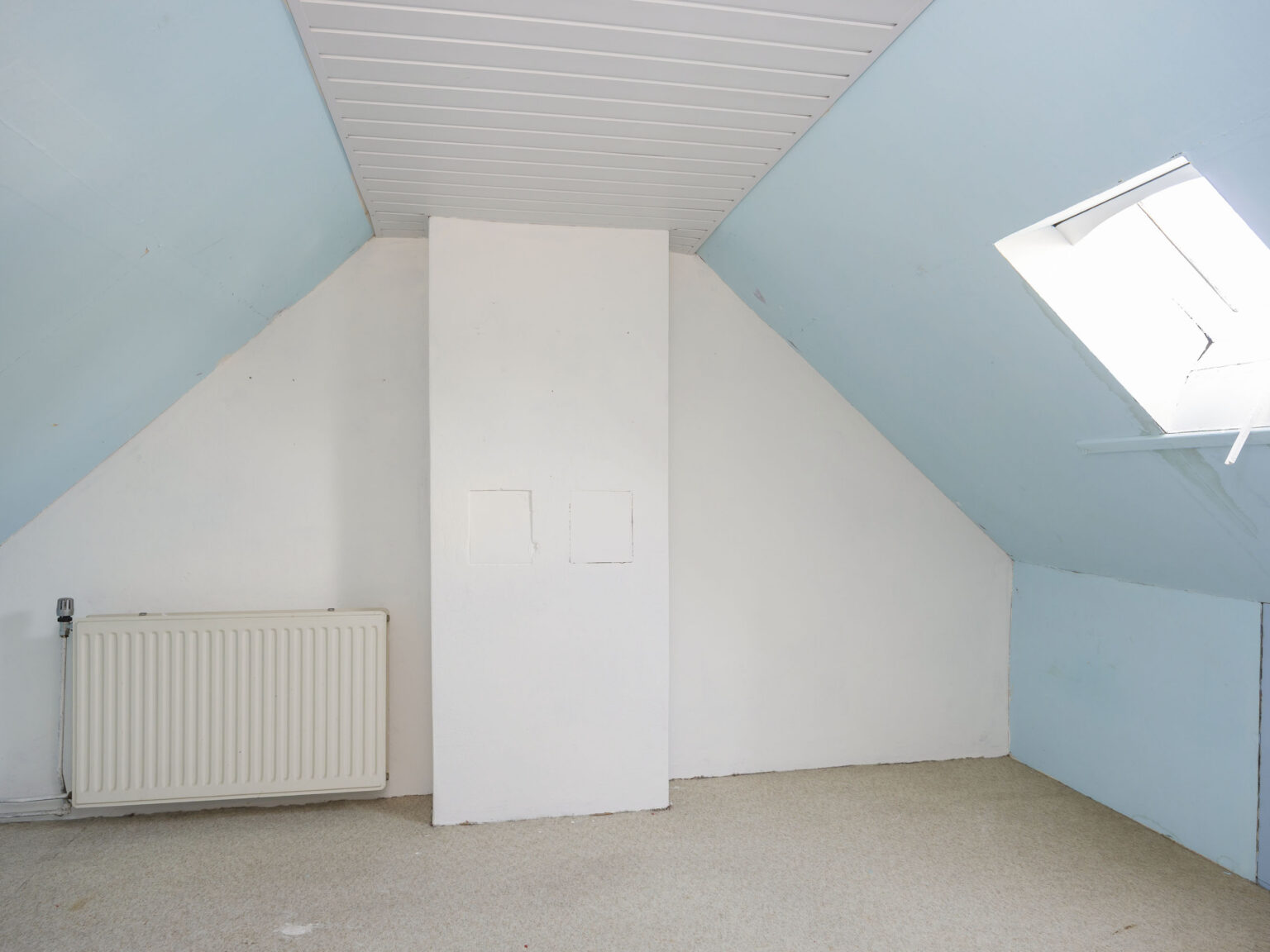Via een vaste trap bereik je de tweede verdieping met een overloop en een extra (slaap)kamer. Door de aanwezigheid van knieschotten is er praktische bergruimte gerealiseerd. Deze verdieping is uitermate geschikt als logeerkamer, werkruimte of hobbyruimte.